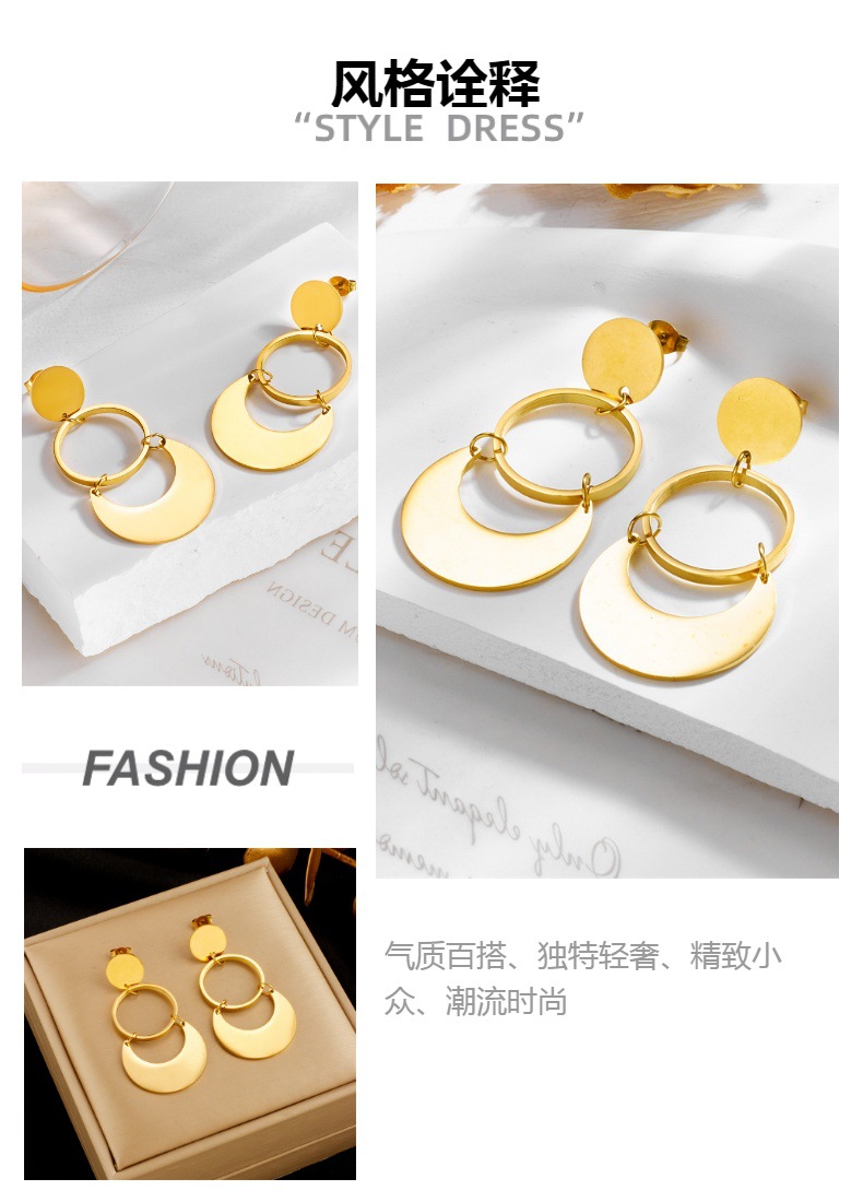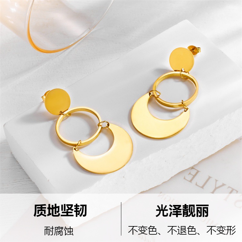 European and American fashion exaggerated geometric circle metal long cold wind stainless steel earrings earrings