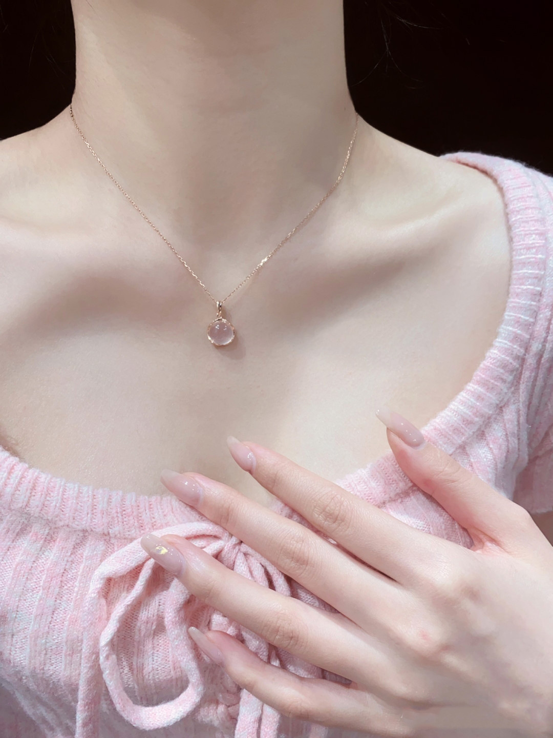Color: [Small size] pink crystal round necklace (Rose Gold)