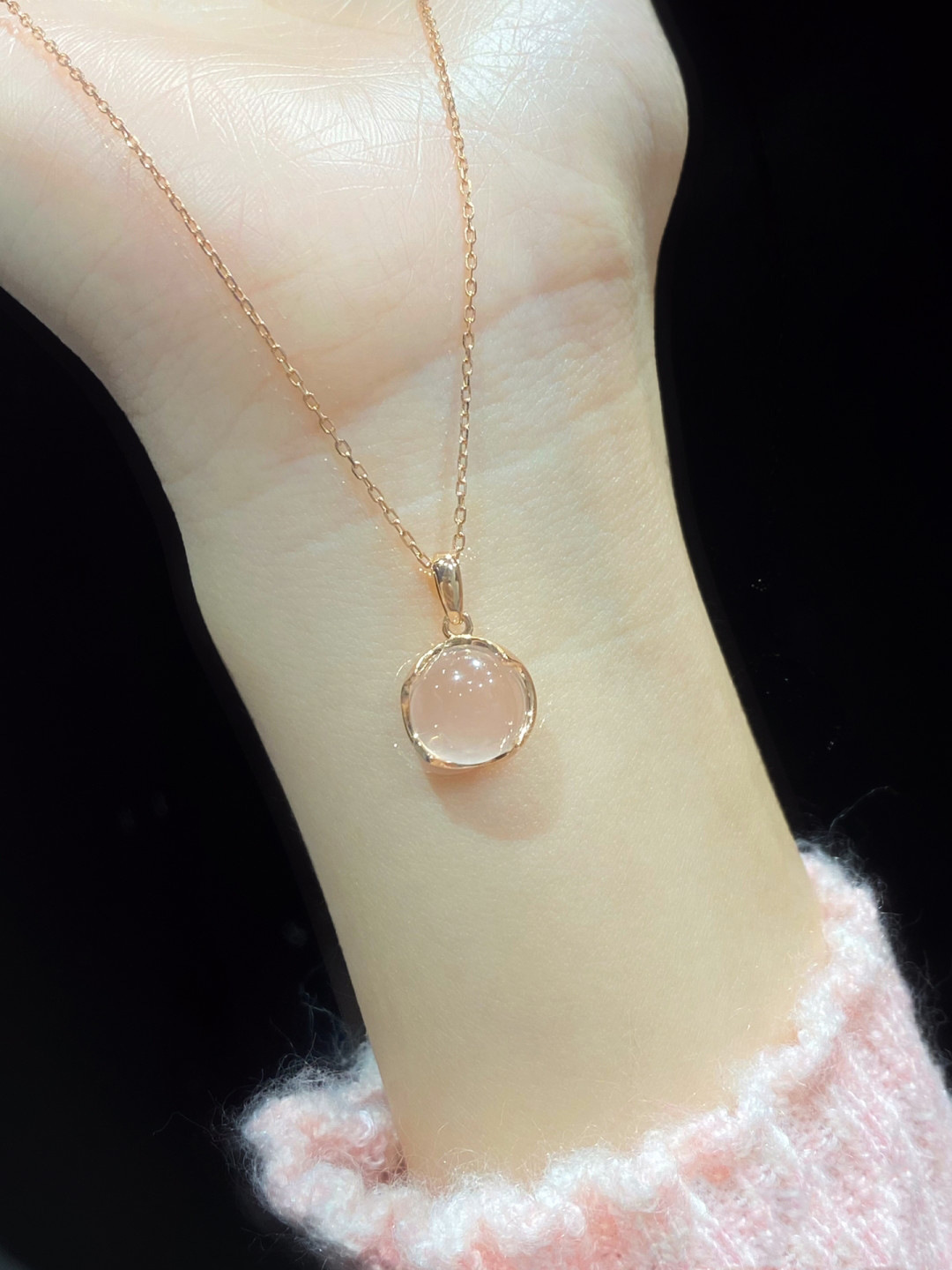 Color: [Large] pink crystal round necklace (Rose Gold)