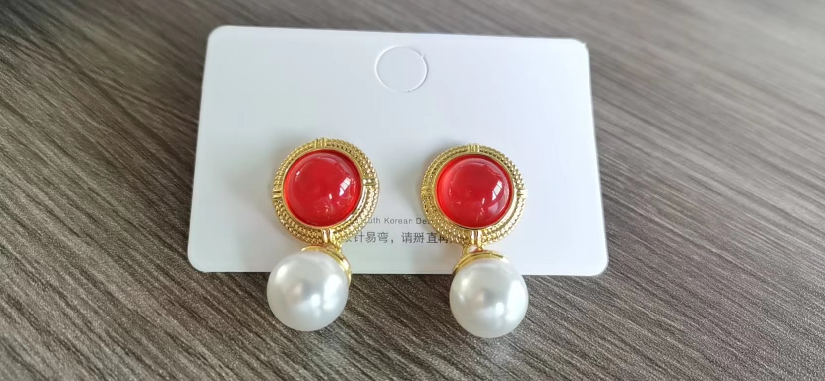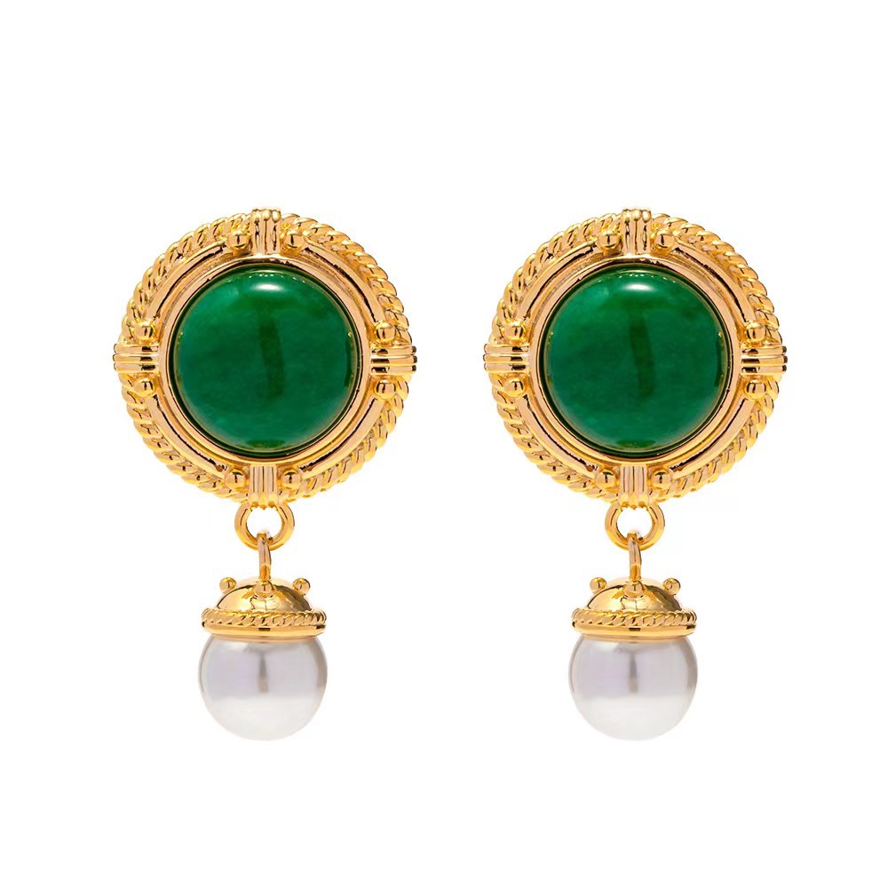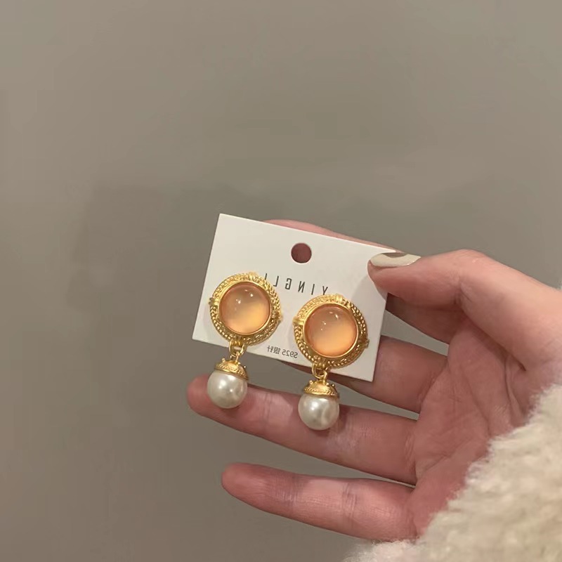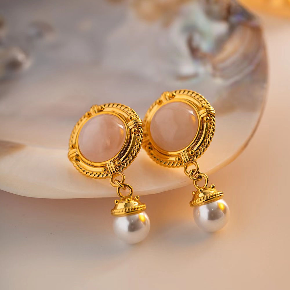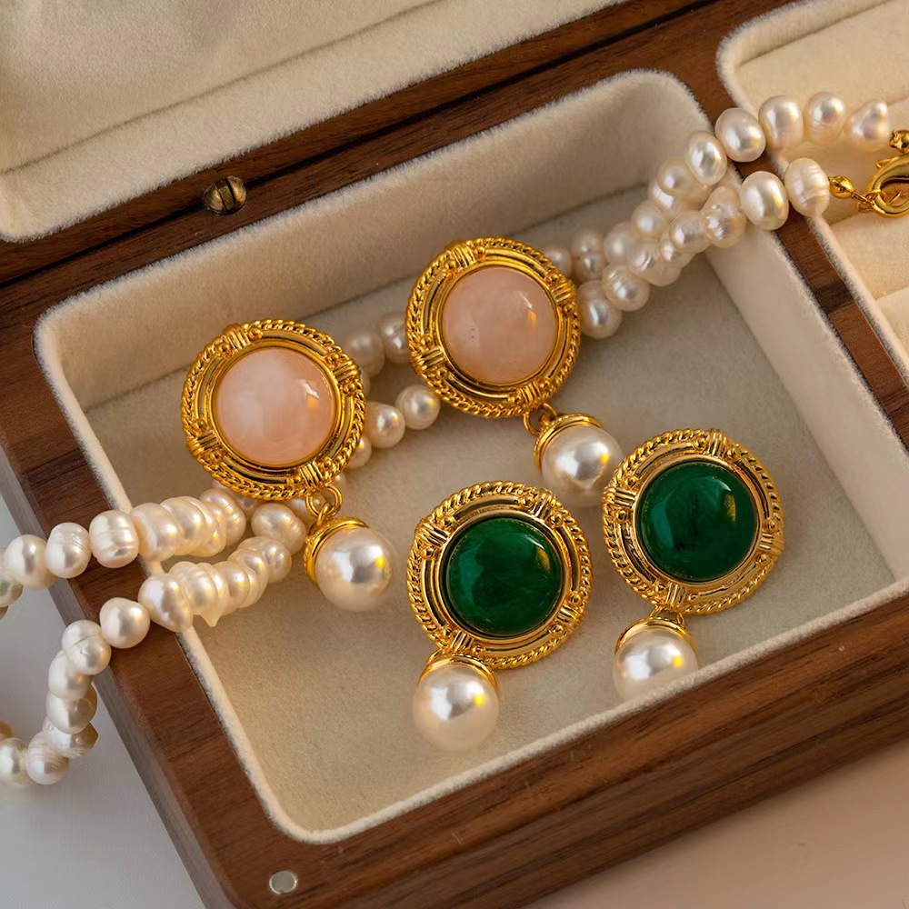 New High-end Retro Court Style Geometric Earrings Exaggerated Elegant Imitation Agate Powder Crystal Earrings 925 Silver Needle Women