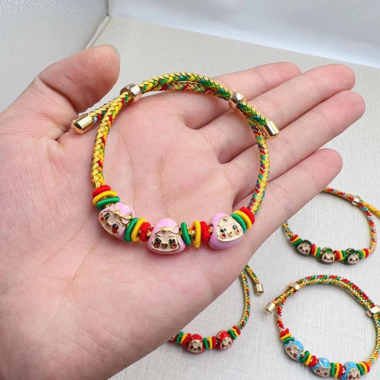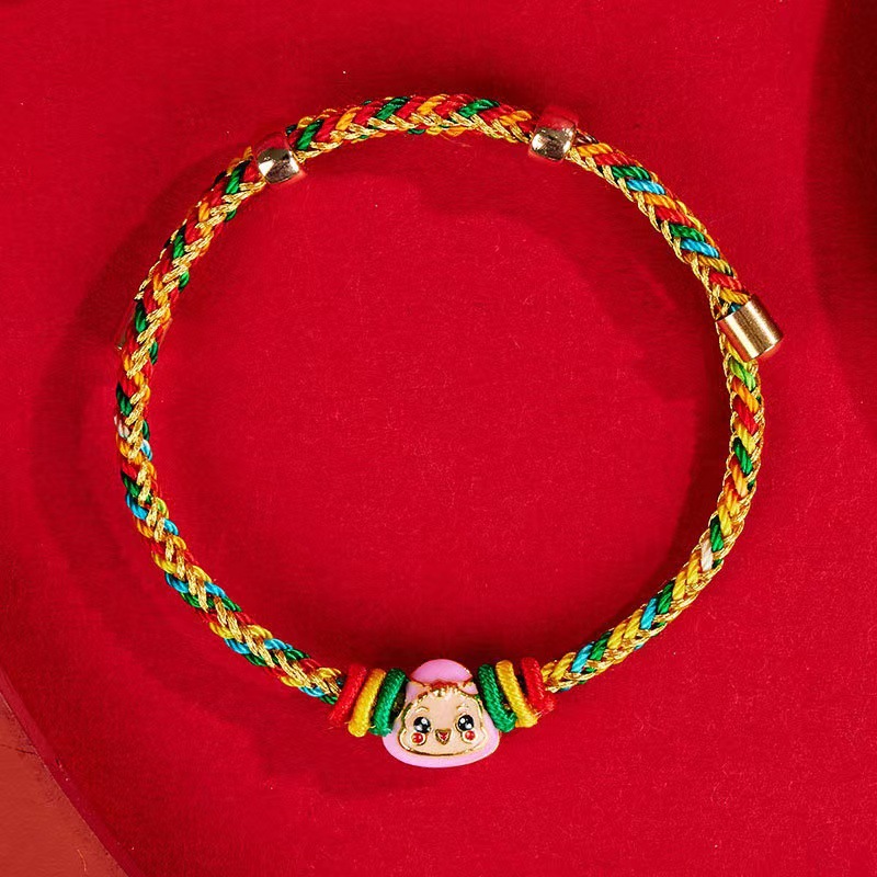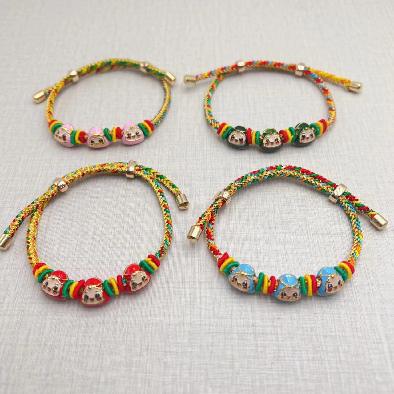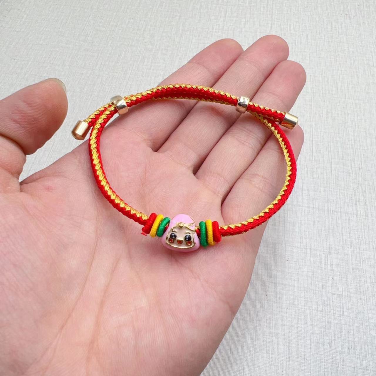 New Dragon Boat Festival Colorful Rope Rice Dumpling Bracelet Braided Alloy Rice Dumpling Baby Blessing Word Bracelet Men and Women Red Rope in Stock