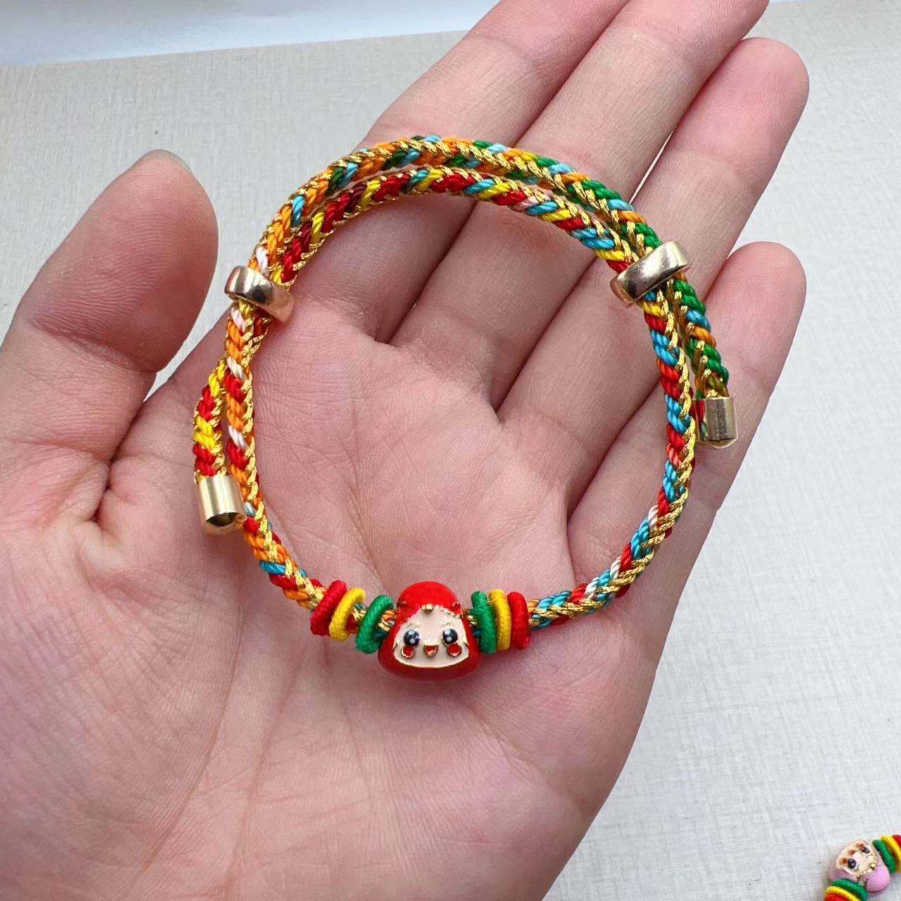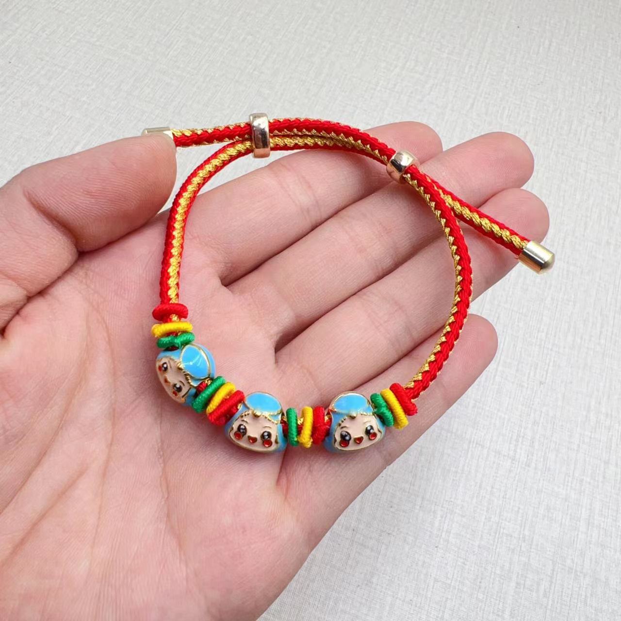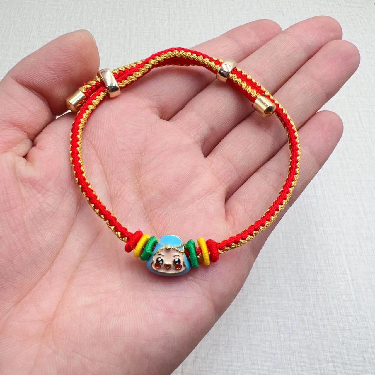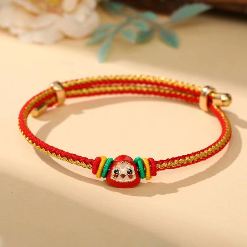 New Dragon Boat Festival Colorful Rope Rice Dumpling Bracelet Braided Alloy Rice Dumpling Baby Blessing Word Bracelet Men and Women Red Rope in Stock
