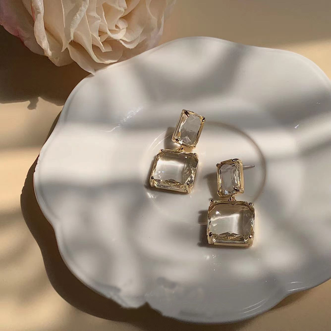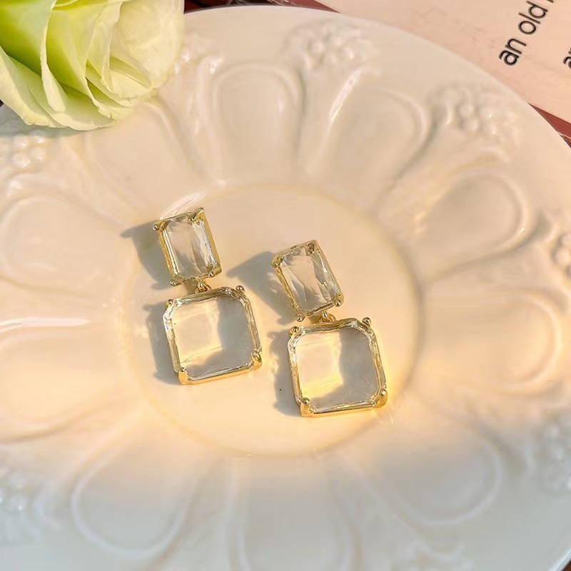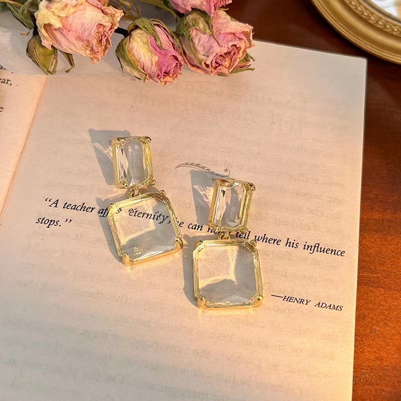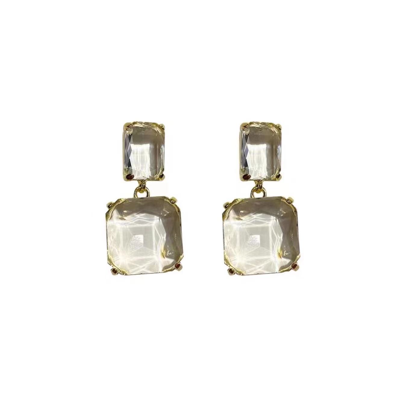 Rum Crushed Ice ~ Retro Hong Kong Style 2023 New Trendy Elegant Celebrity Transparent Gemstone High-End Geometric Earrings