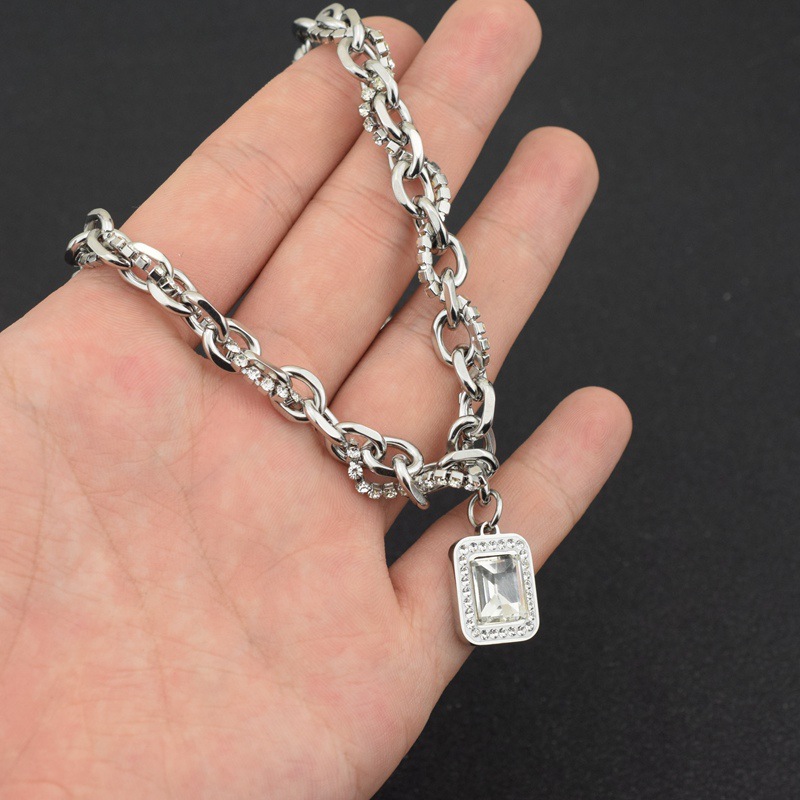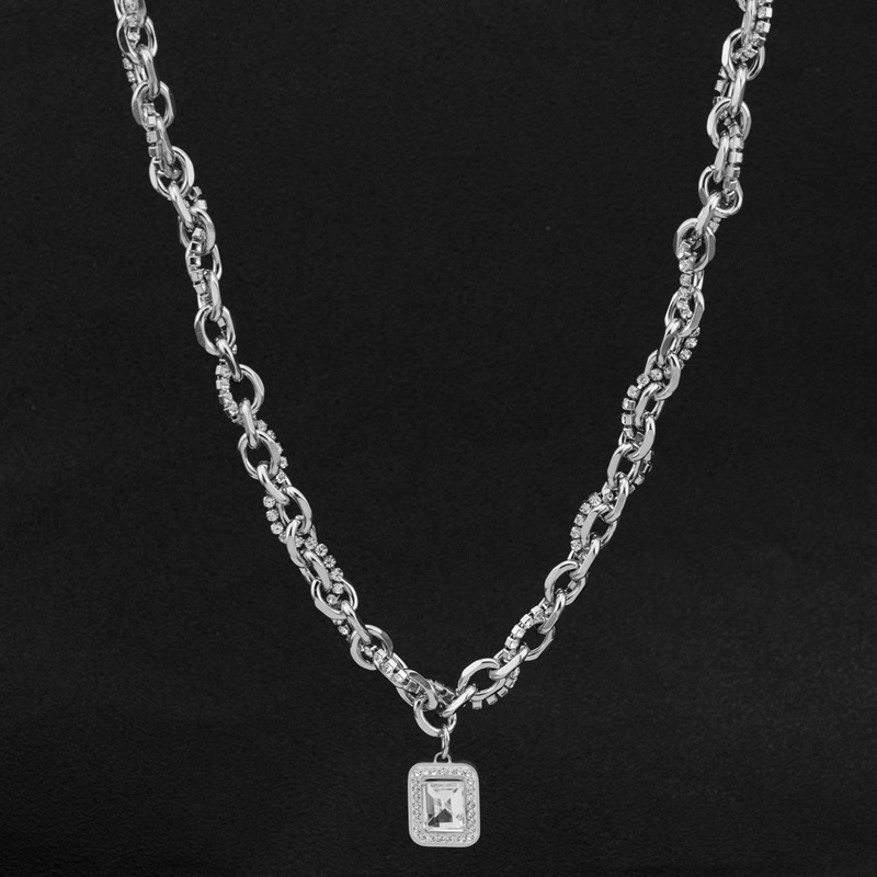尺寸:项链长50+5CM 钻链宽2MM 链宽7.5MM吊坠宽13.6MM 长18.7MM