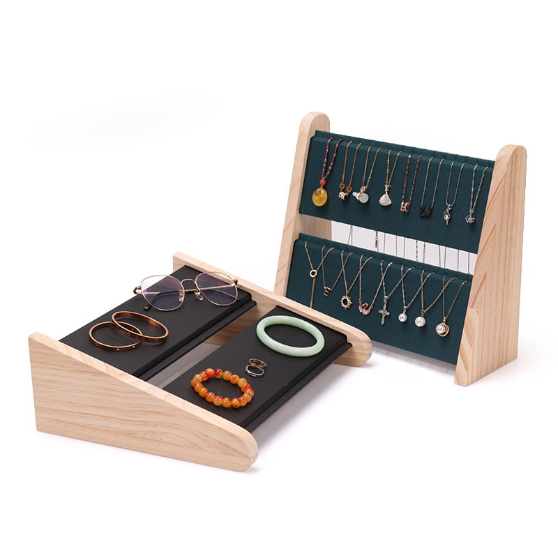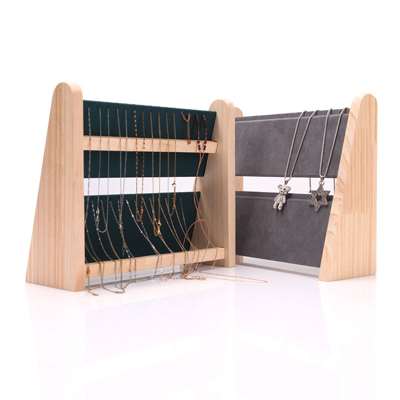 Color: Solid Wood triangle two-layer necklace rack dark green