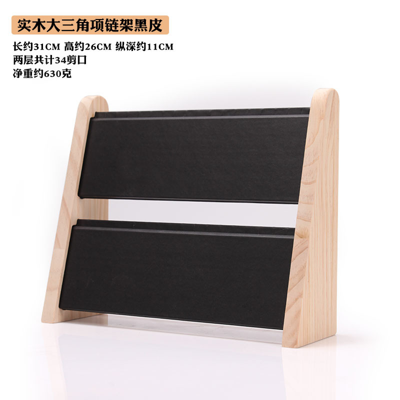 Solid Wood Triangle Two-layer Necklace Rack White Leather