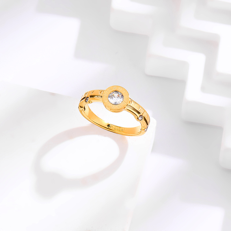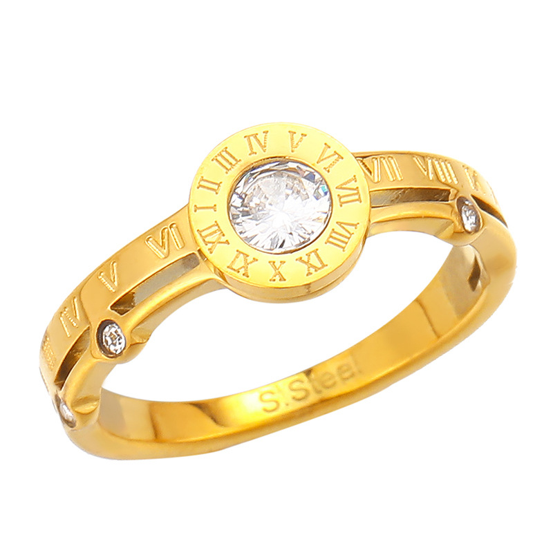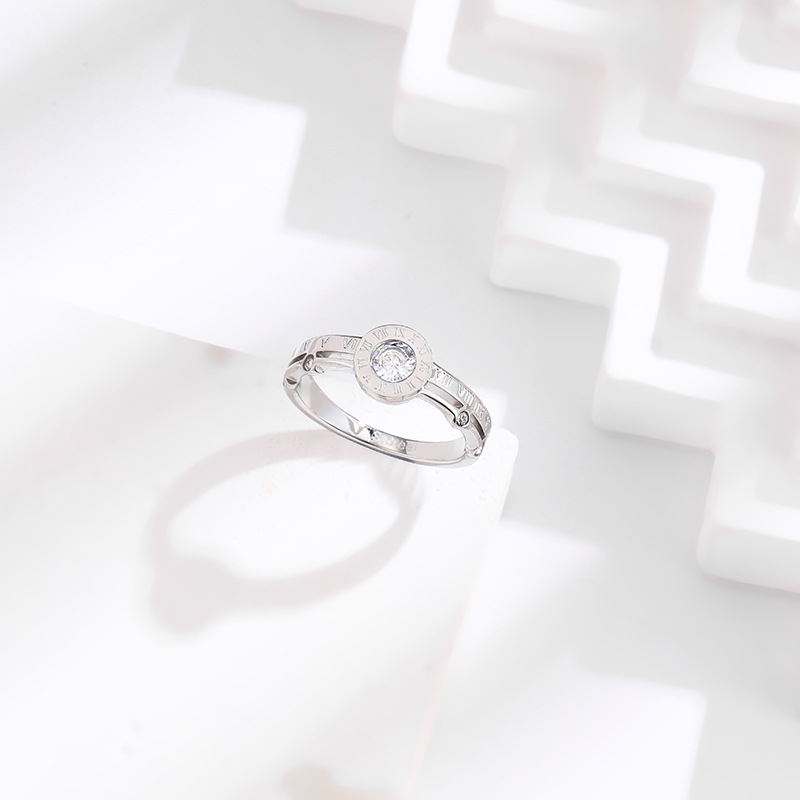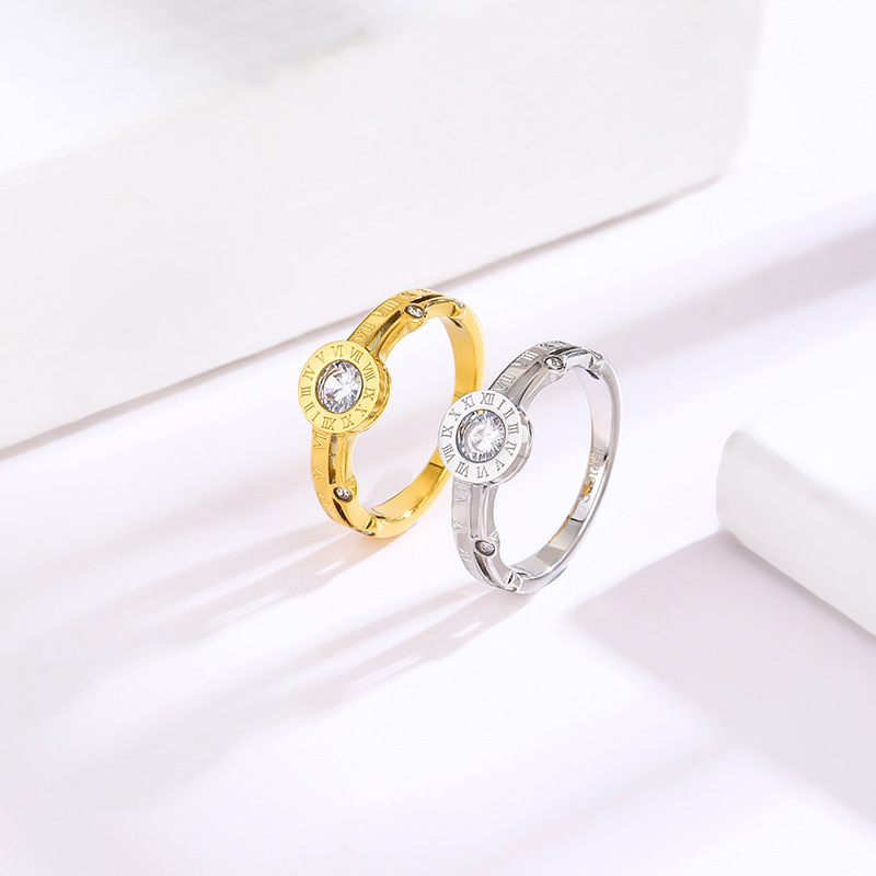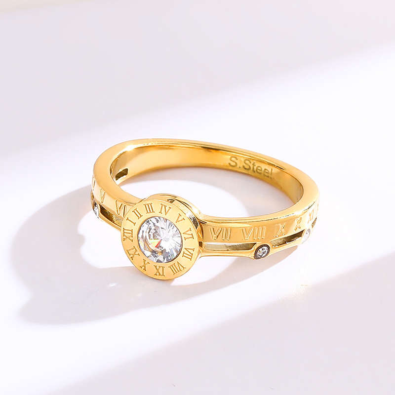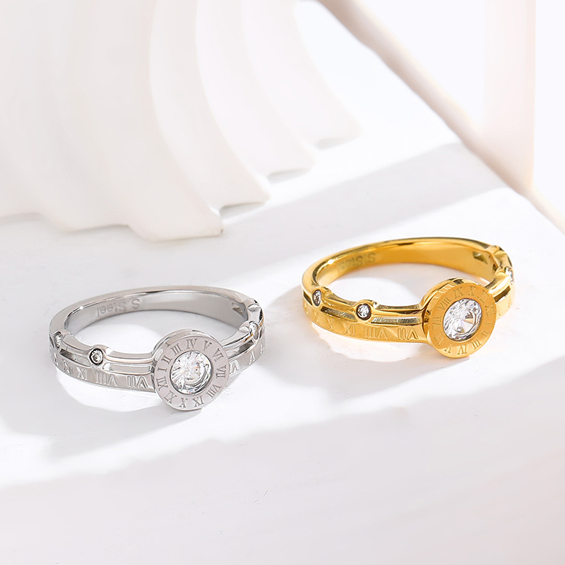 Cross-border e-commerce supply stainless steel cross Roman numeral zircon ring color retention fashion Europe and the United States