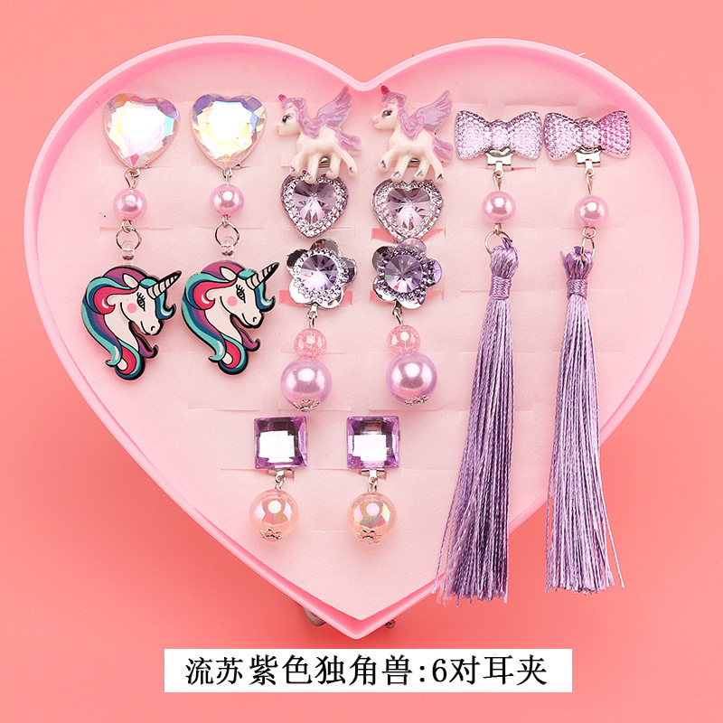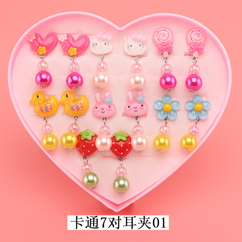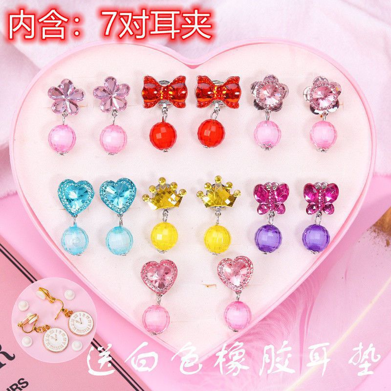 Children's ear clip no ear hole set baby Princess cute cartoon girl fake earring jewelry girl Holiday Gift