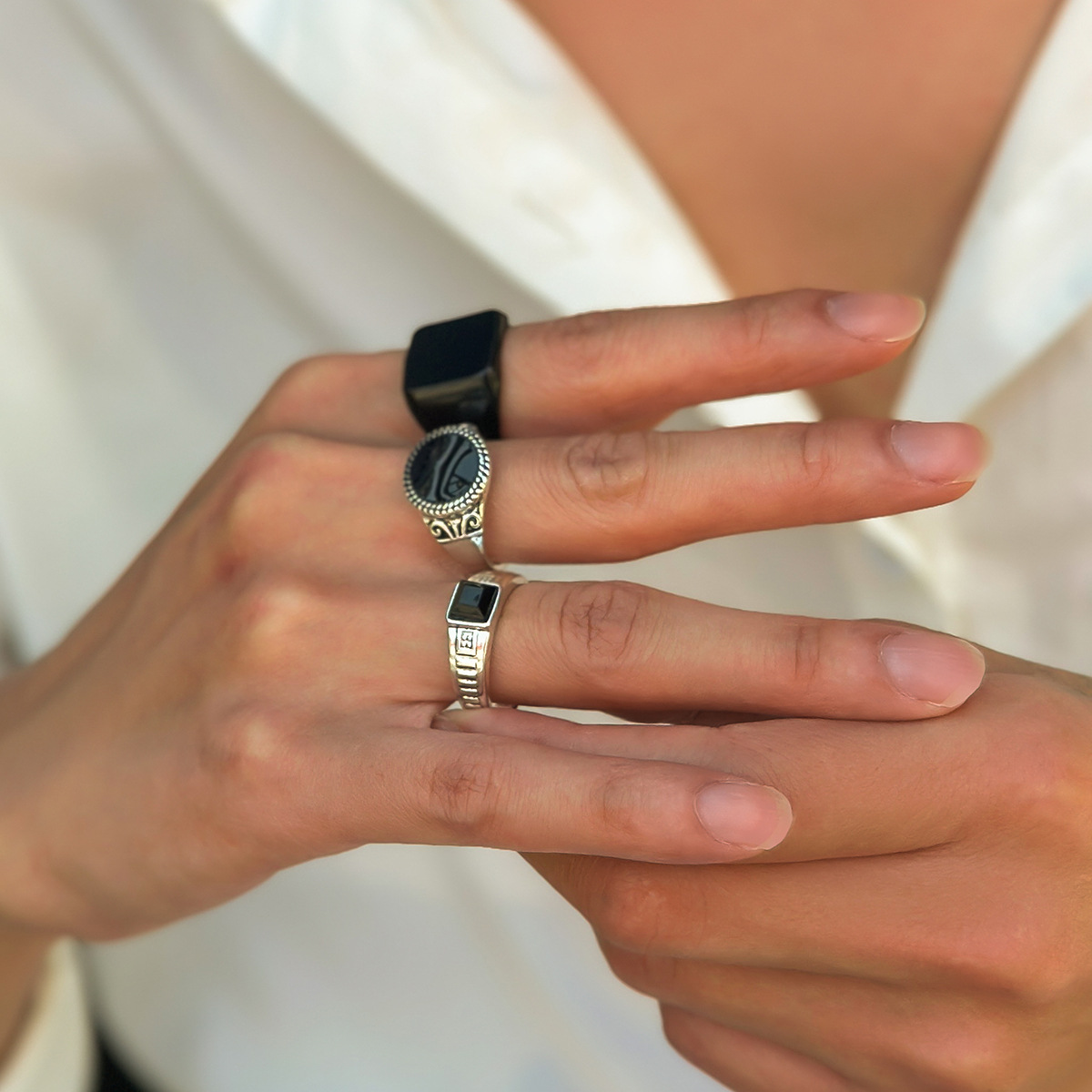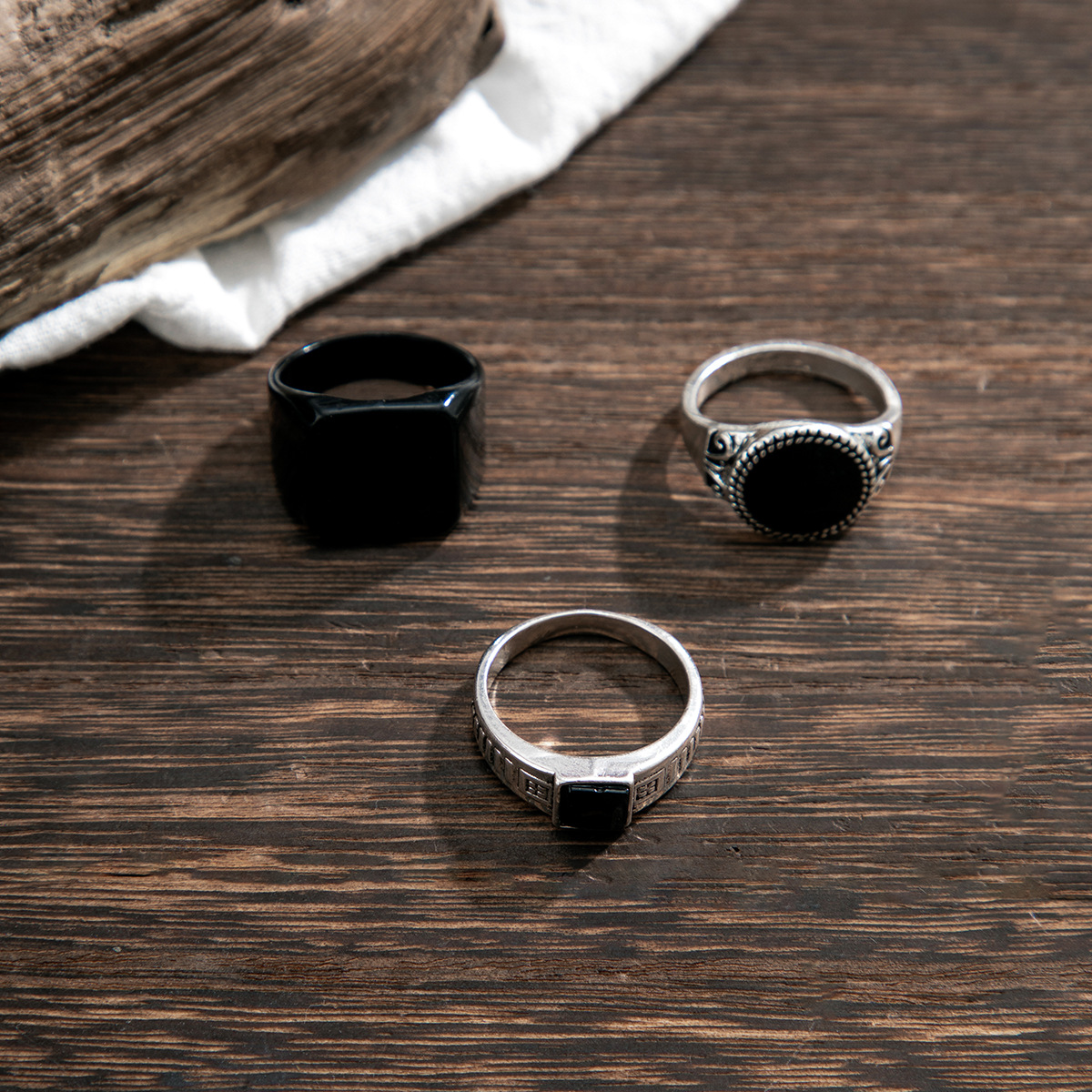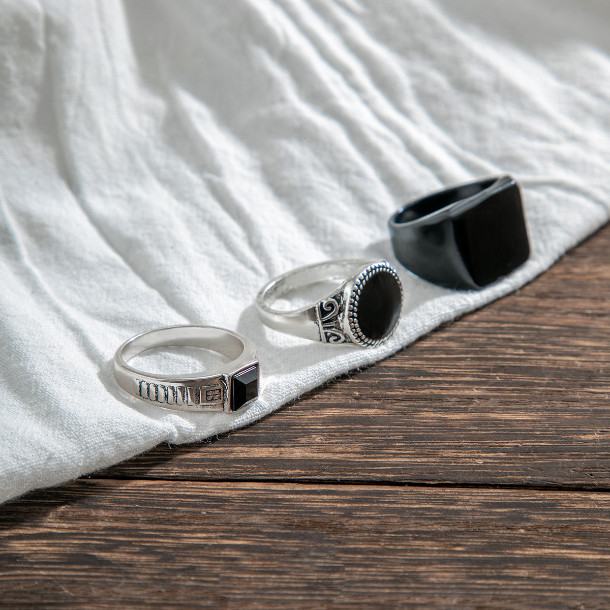 European and American cross-border black gem ring men's fashion personality retro high-grade ring index ring men's ring set