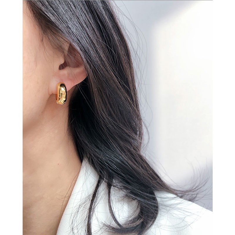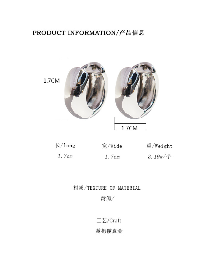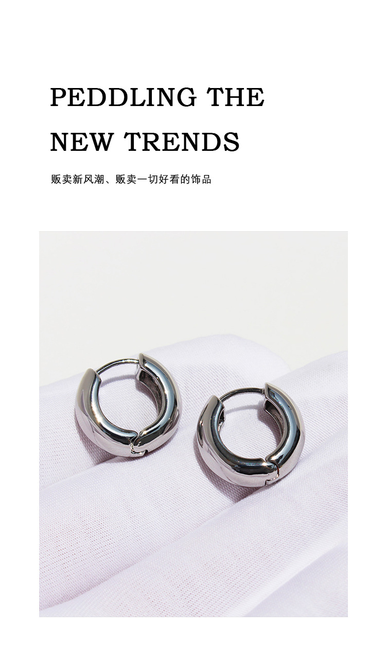 All-match Basic medium plain hoop earrings women's fashion smooth earring wide version cold wind clear cold ear buckle women's 359