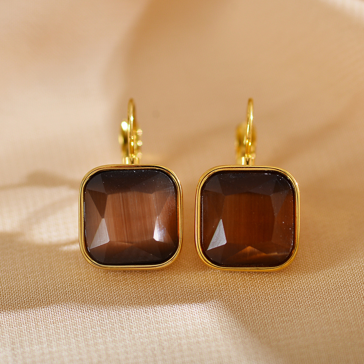 Cold Style Contrasting Color Earrings, Niche Design, Versatile Stainless Steel Diamond-Encrusted Earrings