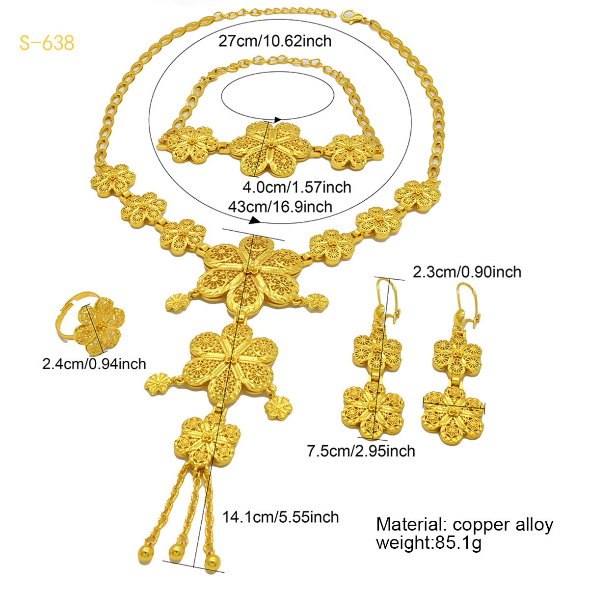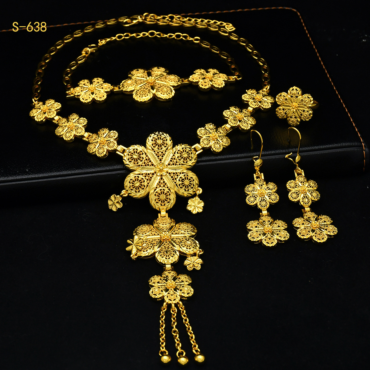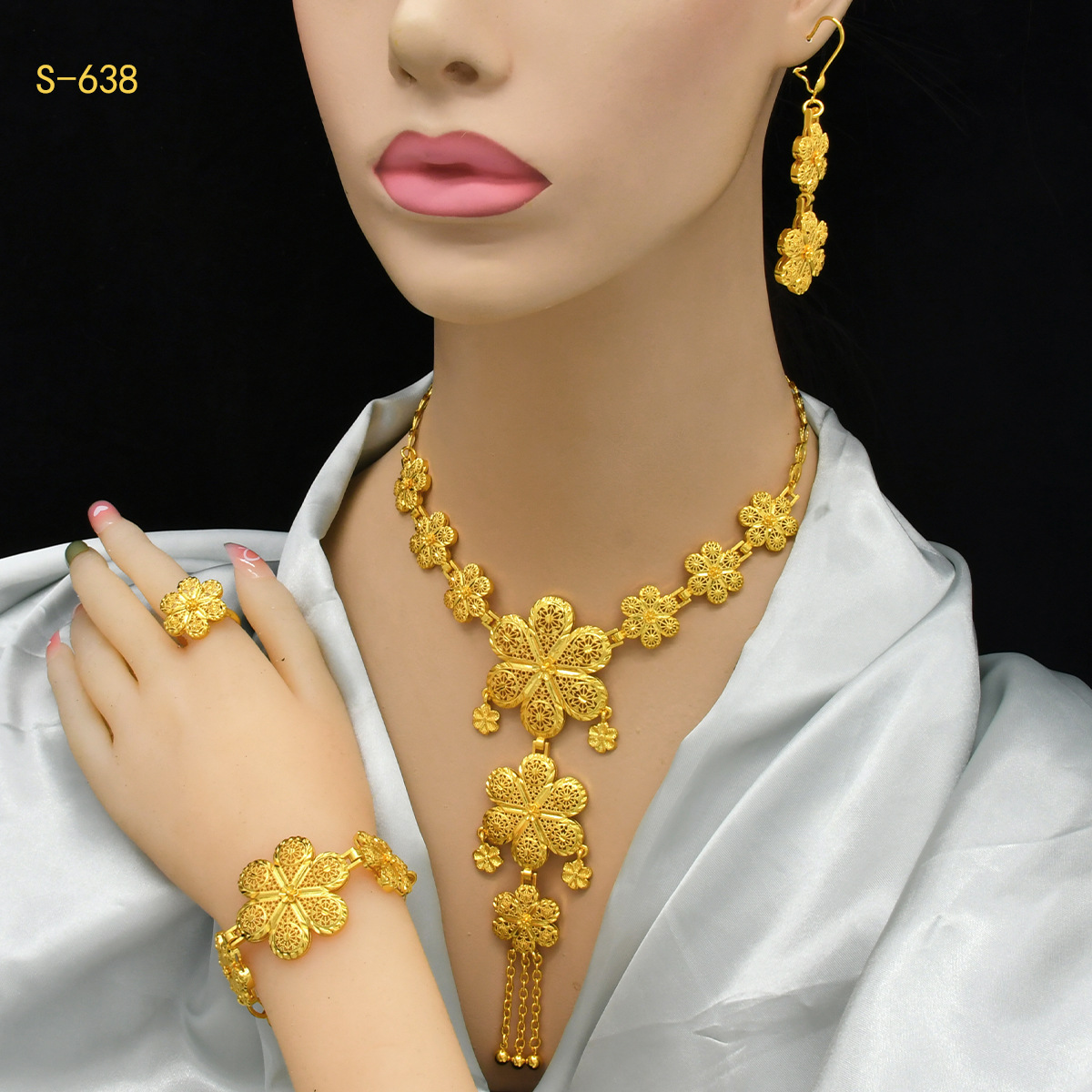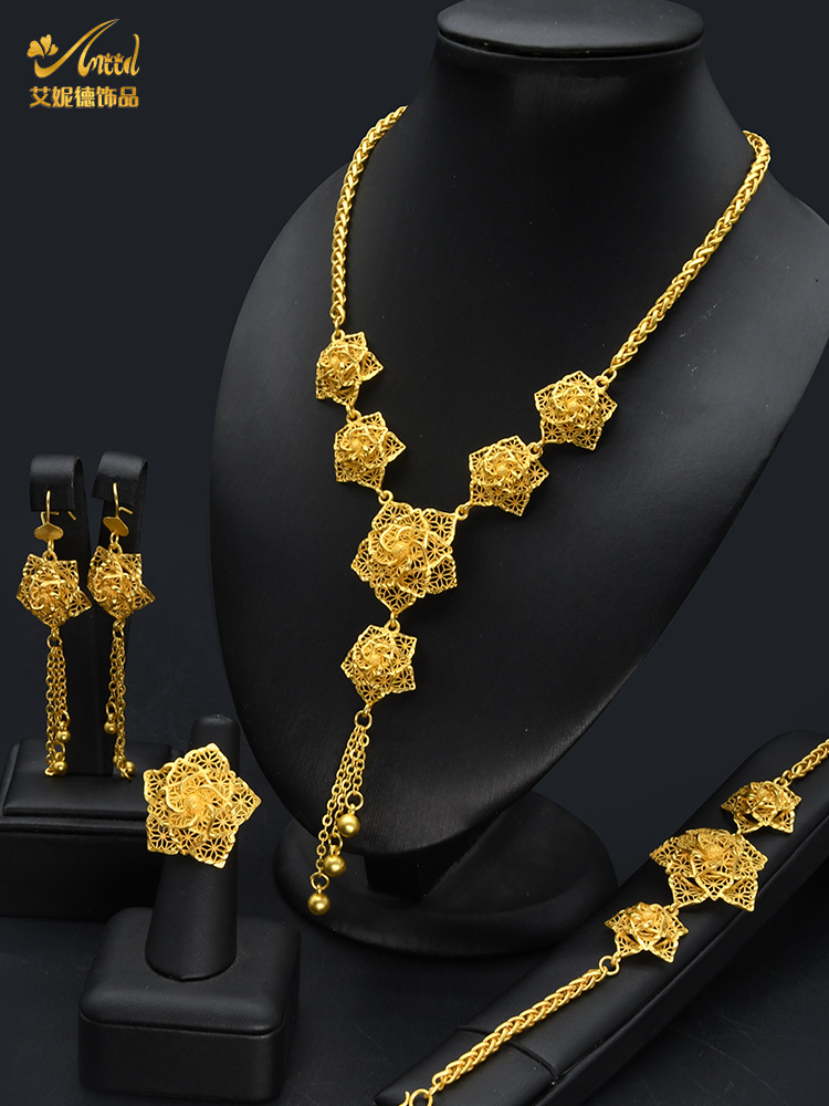 Scene: Ainid Dubai Bride 24K Gold Plated Necklace Bracelet Earrings Ring Jewelry Set