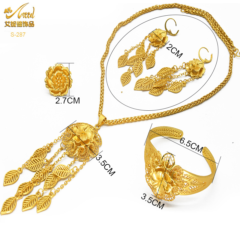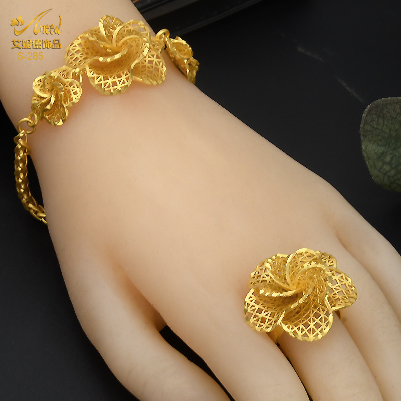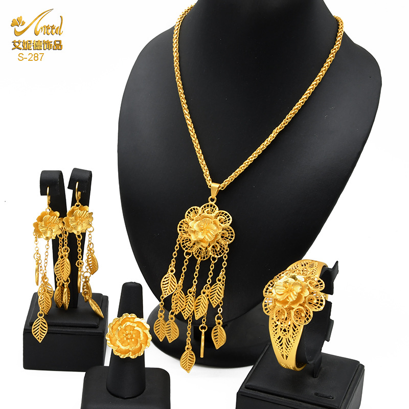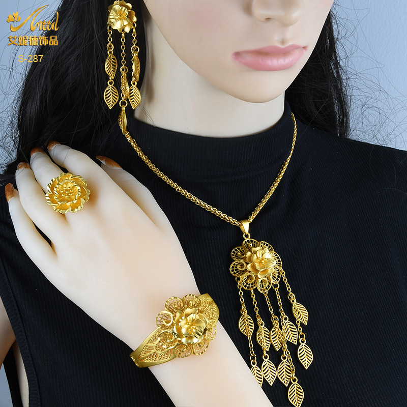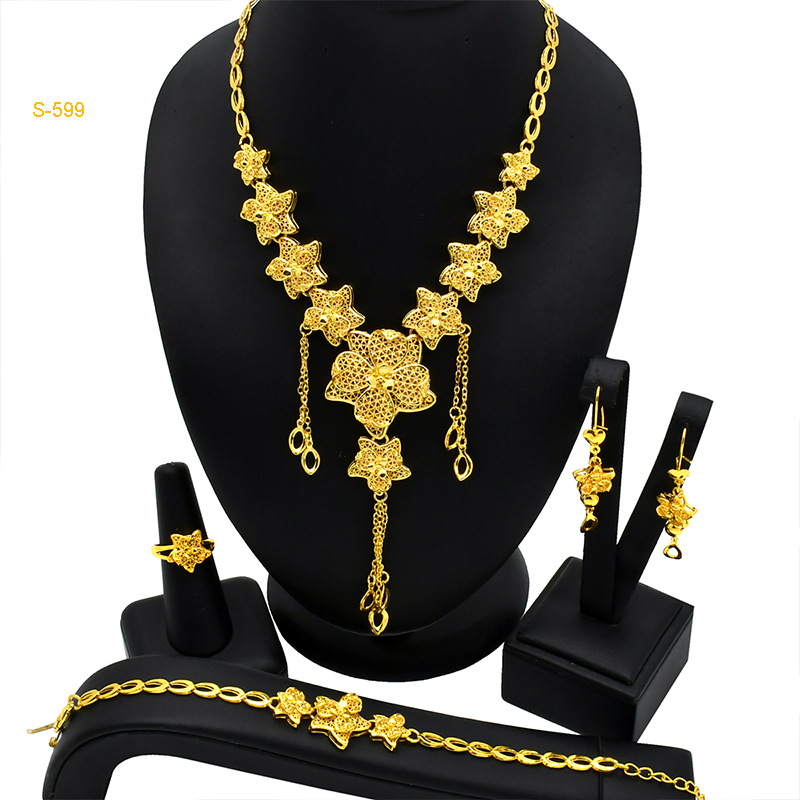 Scene: Ainid Dubai Bride 24K Gold Plated Necklace Bracelet Earrings Ring Jewelry Set