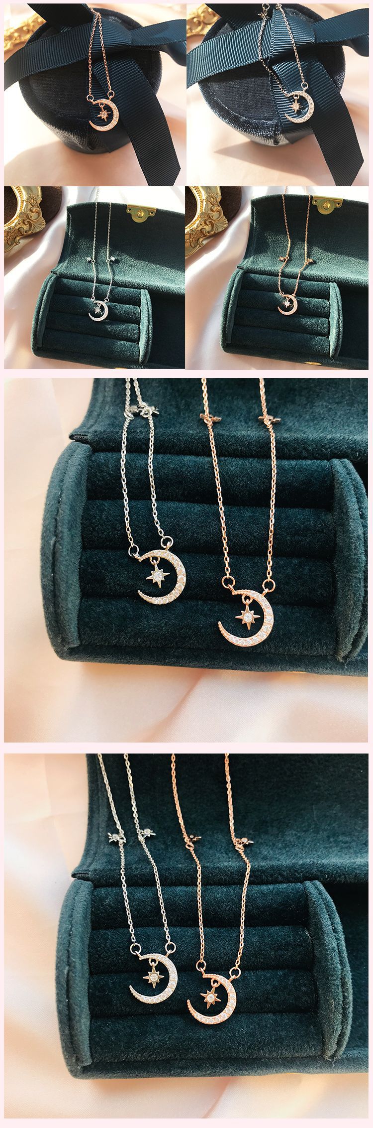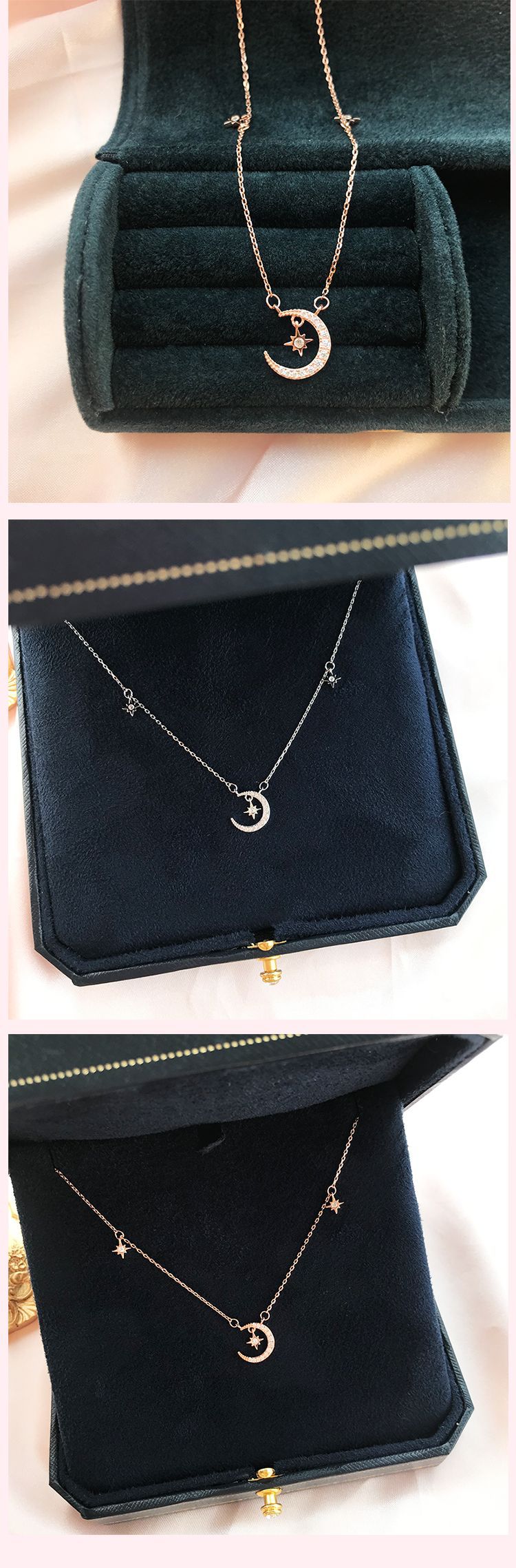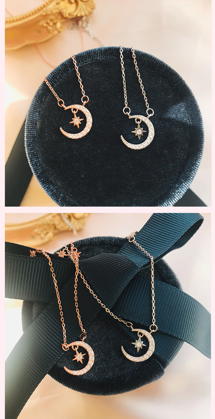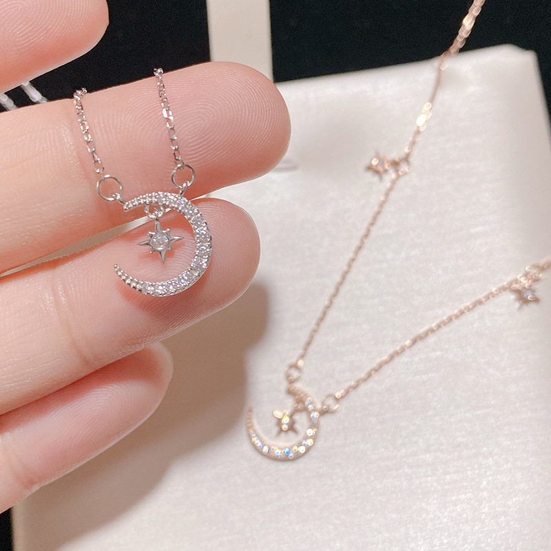Micro inlaid star moon necklace women's all-match light luxury niche design sweet and cool ins cold style wholesale clavicle chain