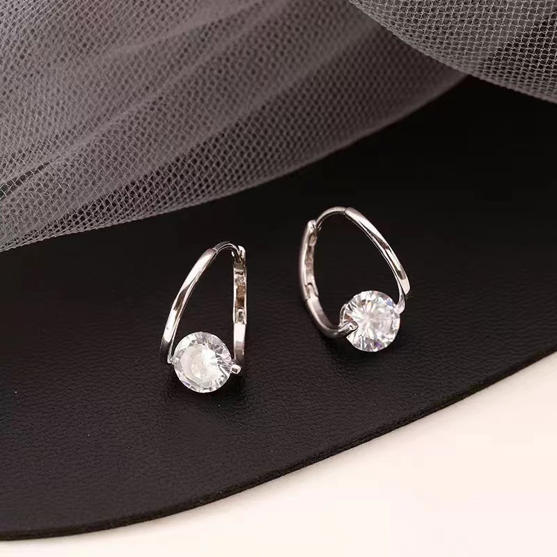 Korean style new geometric micro inlaid zircon ear buckle niche design fashionable exquisite temperament simple multi-match female earrings