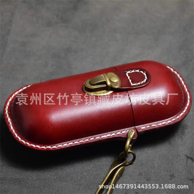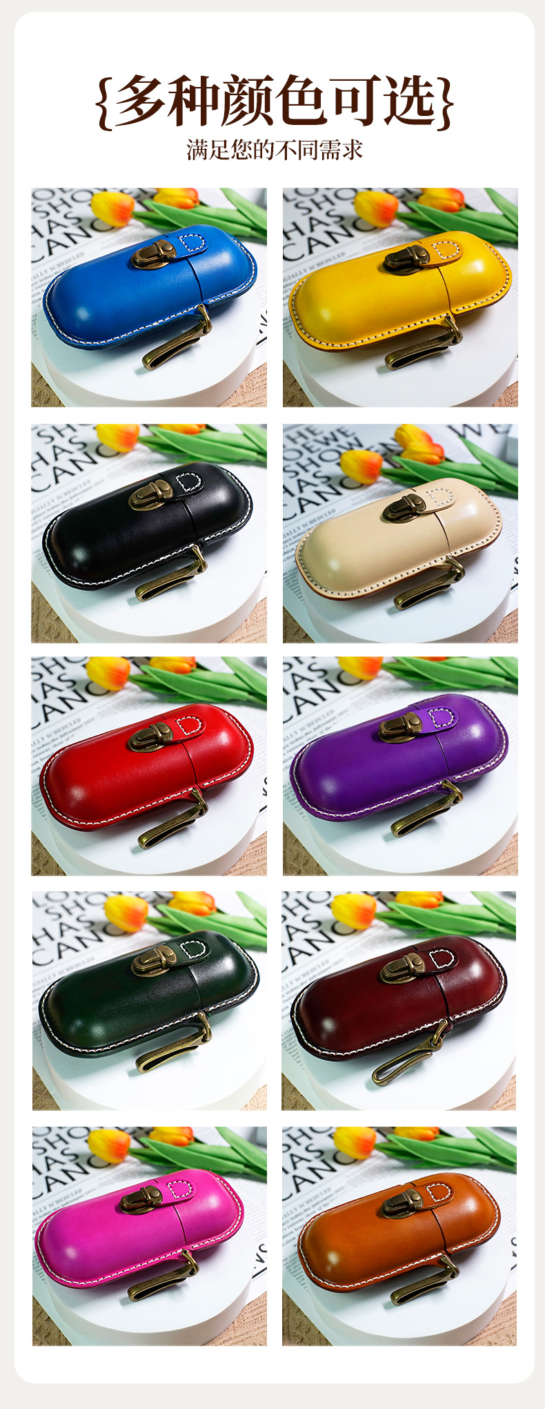 Cross-Border first layer cowhide glasses box simple retro capsule leather handmade myopia sunglasses storage box wholesale