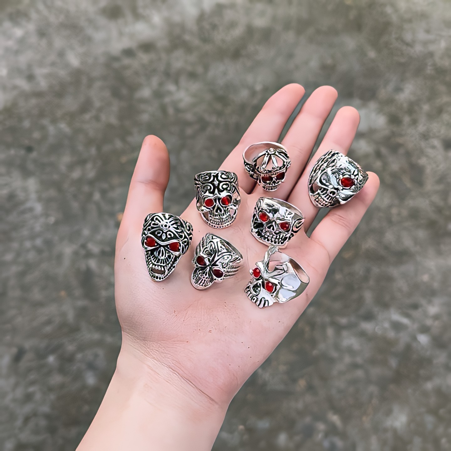 Europe and the United States cross-border Men's exaggerated skull ghost ring inlaid red diamond red eyes ghost ring manufacturers wholesale