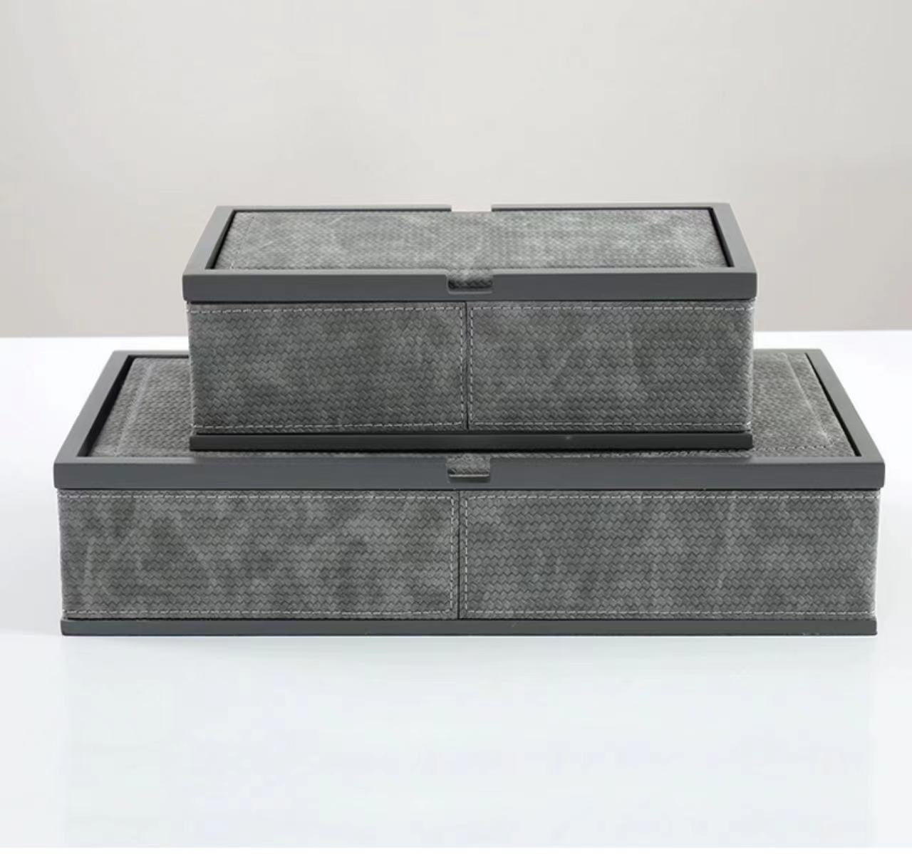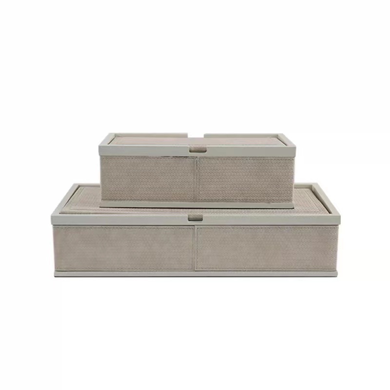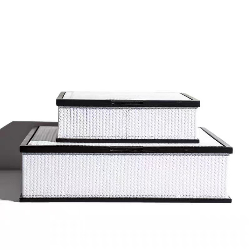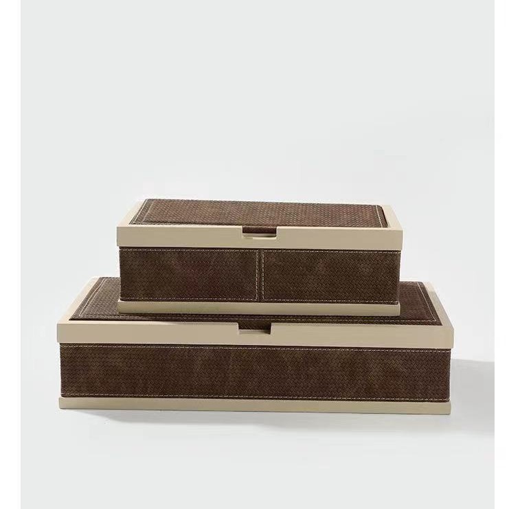 Modern simple European-style light luxury woven leather jewelry box storage box bedroom cloakroom dressing table sales office decoration