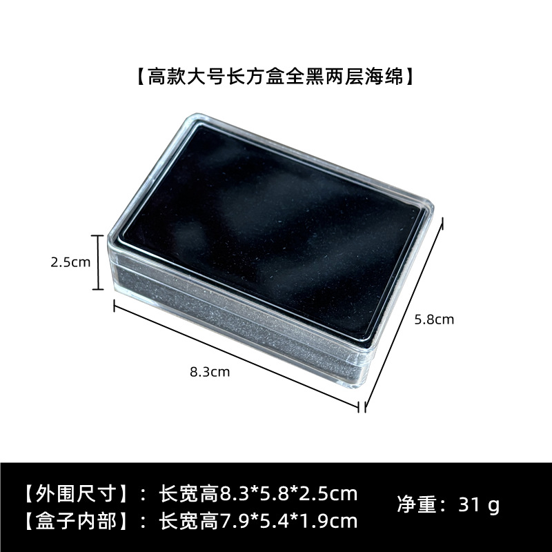 Specifications and models: Short rectangular box, single layer black cotton; transparent material