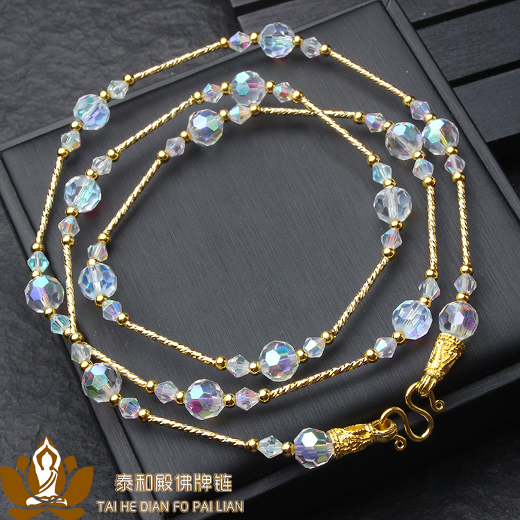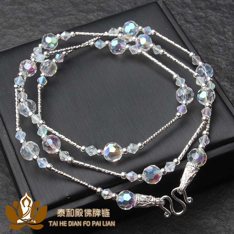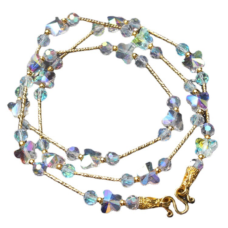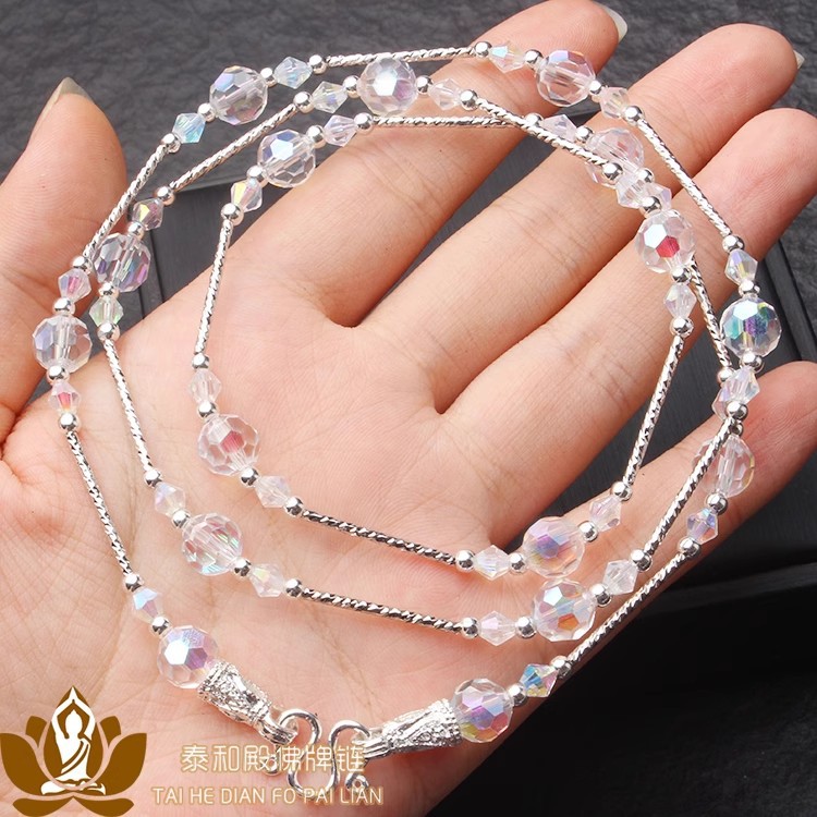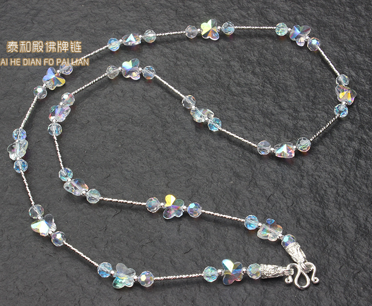 Thai Buddha Amulet Chain with Colorful Butterfly Diamond Surface Buddha Amulet Rope, Exclusive for Rope-Chasing, Super Shiny Crystal Buddha Amulet Necklace