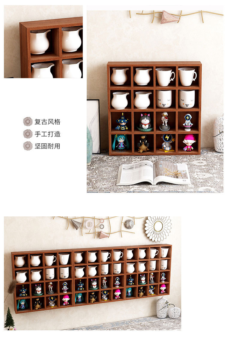 Vintage Wall Hanging Wall Storage Rack Wooden Sixteen Palace Grid Desktop Storage Box Ornaments Blind Box Storage Rack zakka