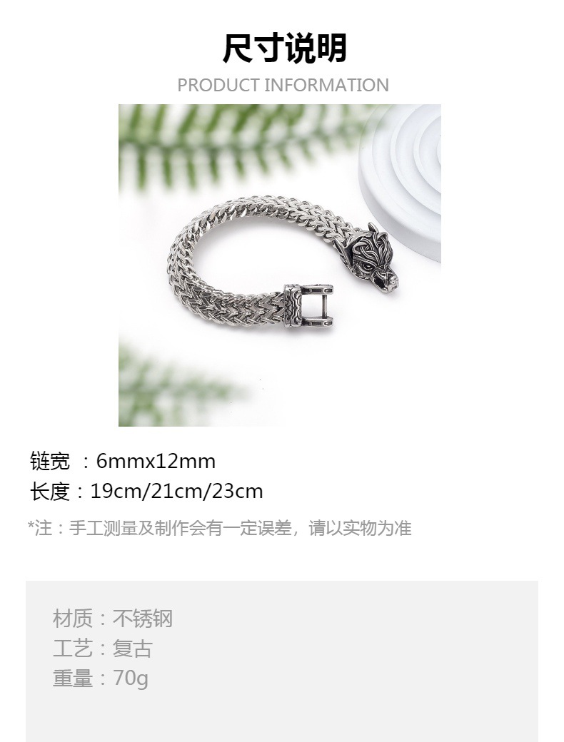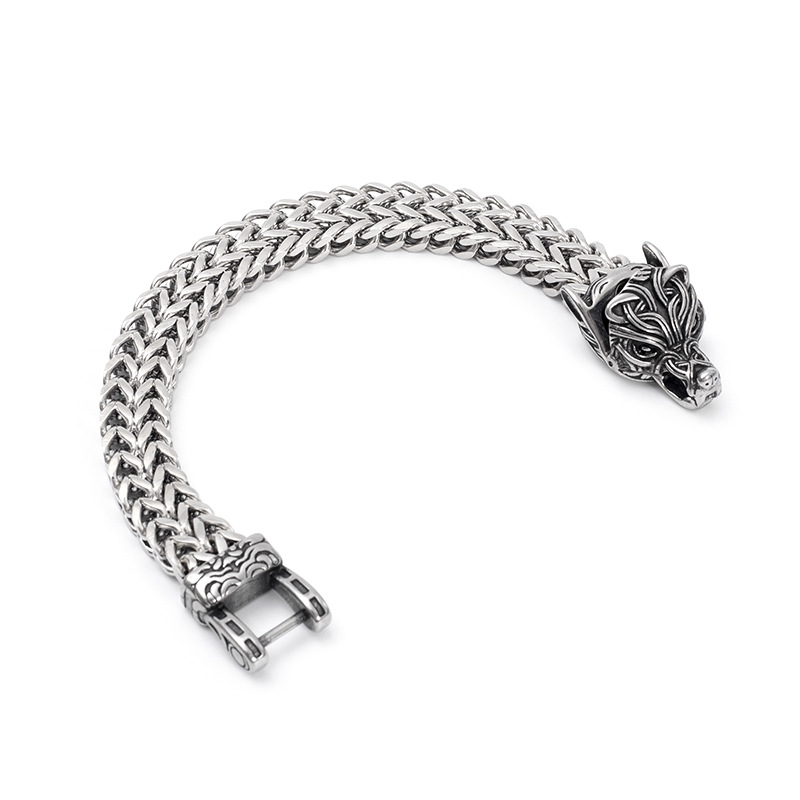 Cross-Border E-Commerce Goods Nordic Mythology Titanium Steel Retro Personality Viking Wolf Head Double-Layer Bracelet Men's Domineering Bracelet