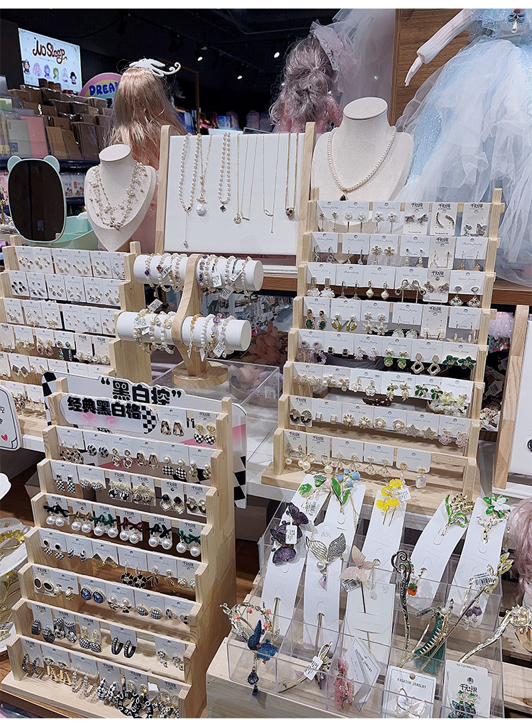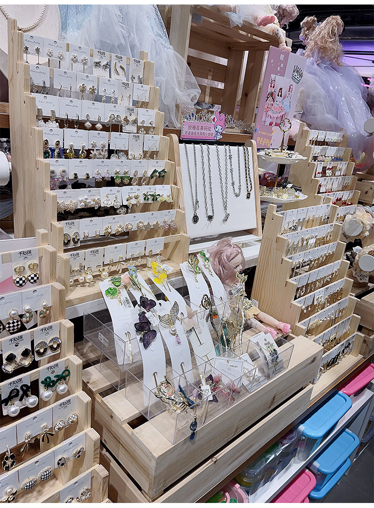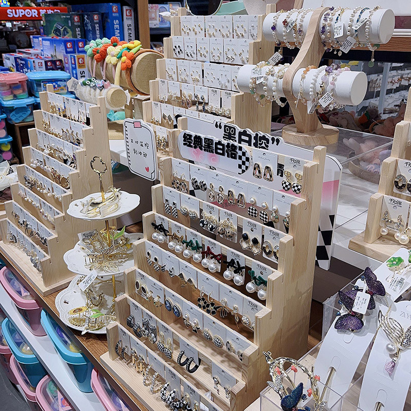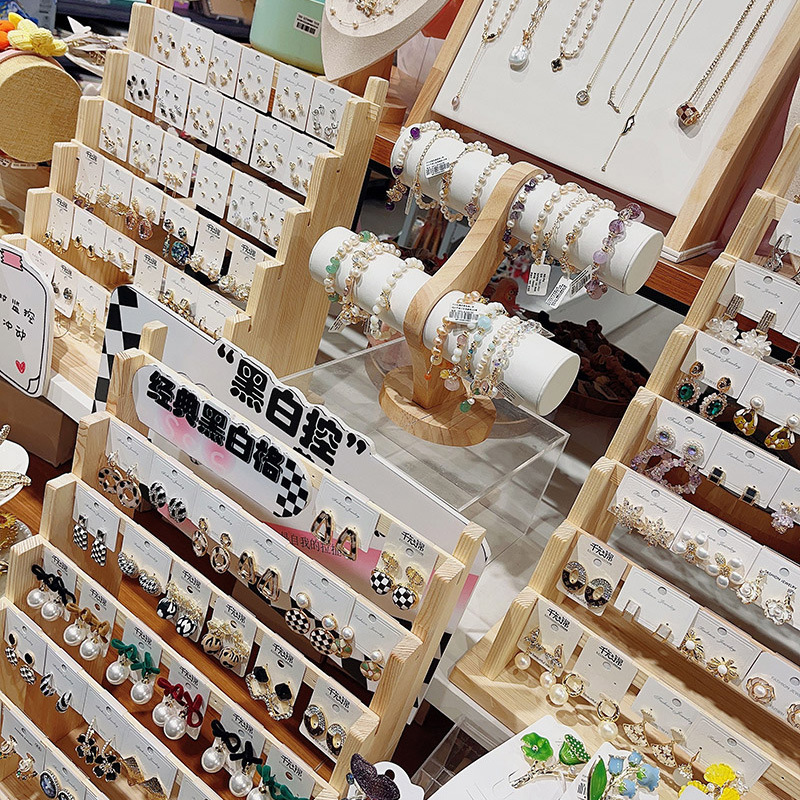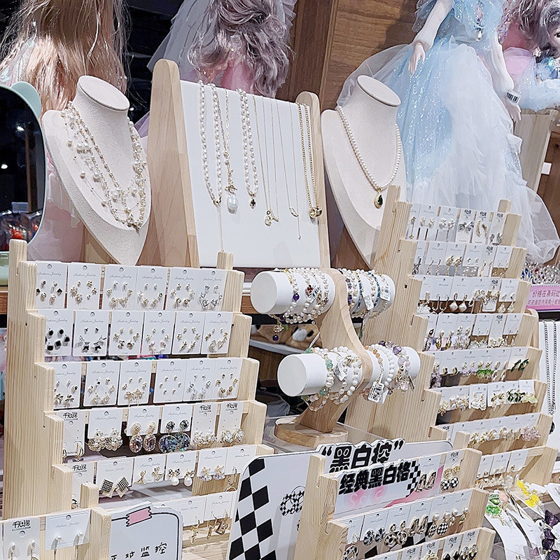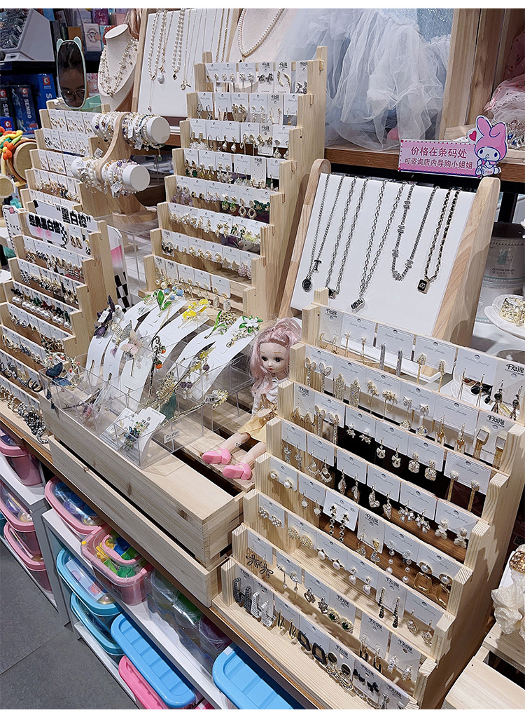 Solid Wood Earring Display Stand Live Broadcast Night Market Jewelry Store Jewelry Display Stand Bracelet Necklace Desktop Jewelry Display Stand