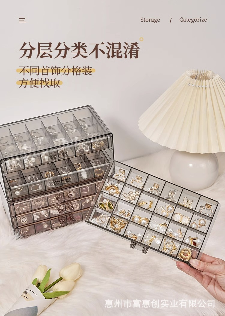 Jewelry Box Jewelry Earrings Necklace Earrings Hair Accessories Hairpin Ring Split Storage Box Anti-oxidation Transparent Small Box