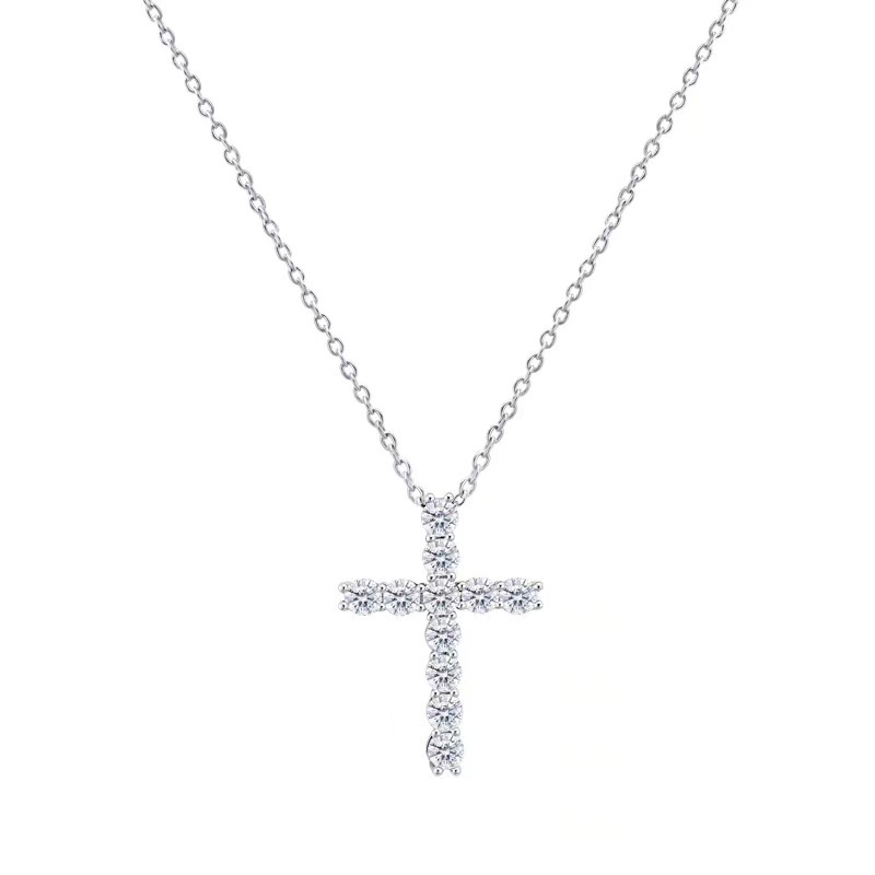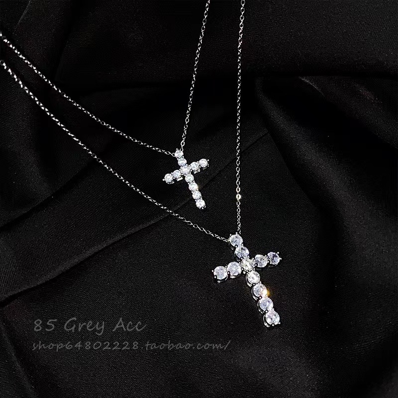 ins Ma Siwei Cross Necklace Silver hiphop Full Diamond Hip Hop Cuban Chain Rap Street Pendant