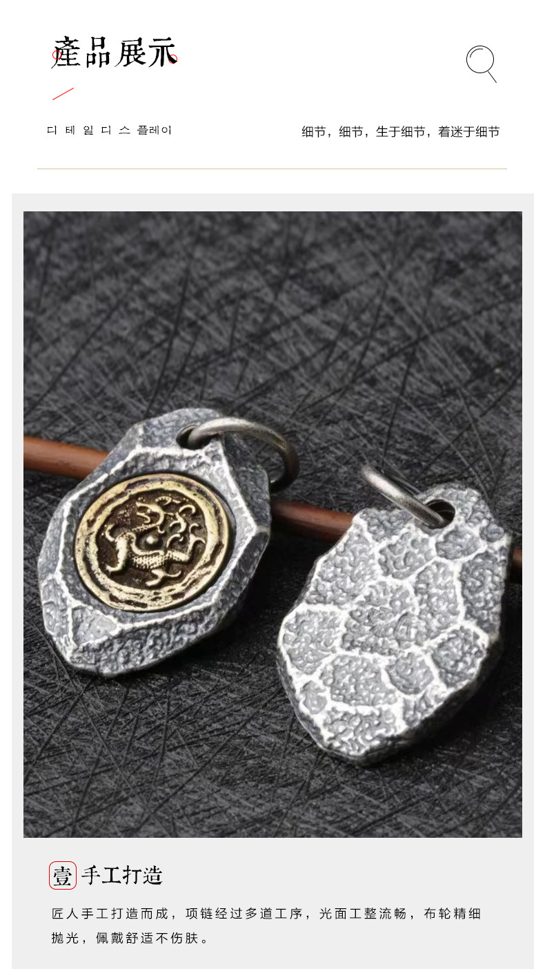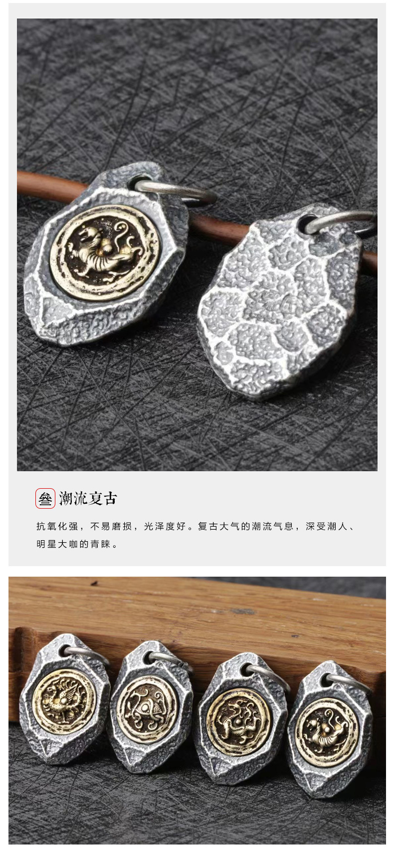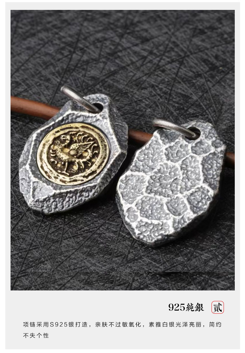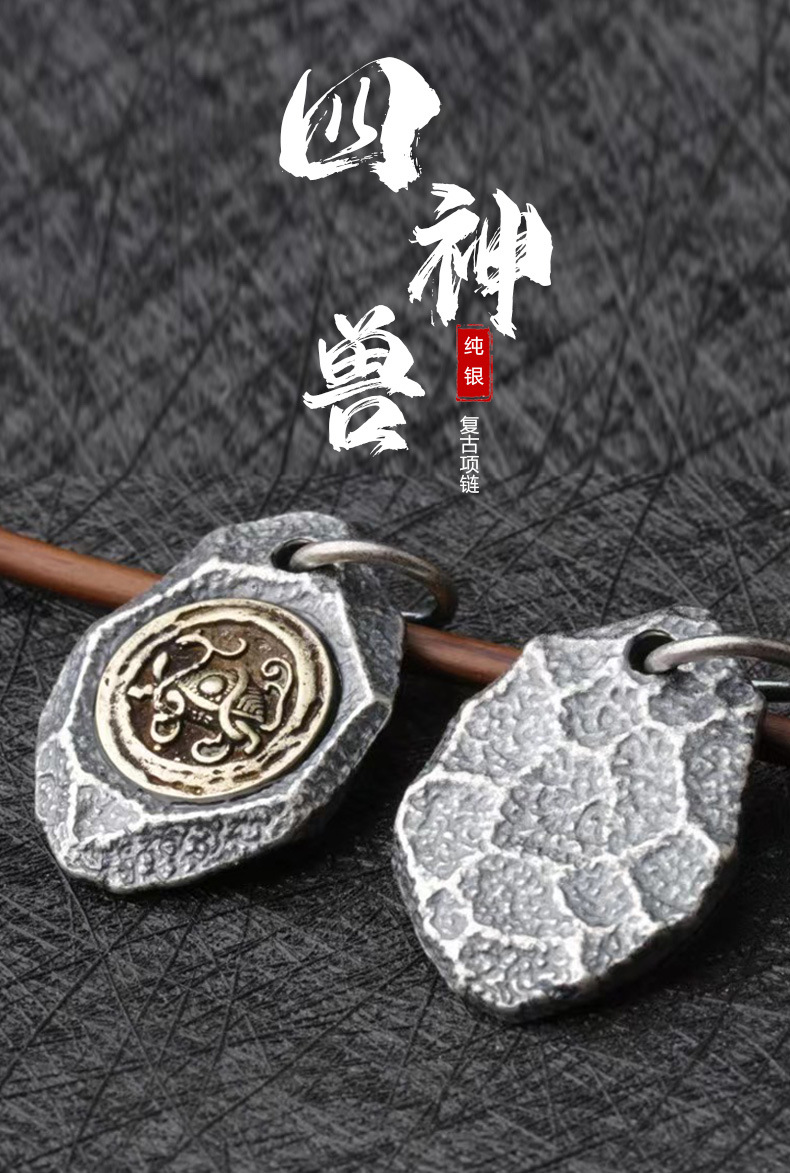 Sterling silver four God Beast pendant Dragon White Tiger basaltic rosefinch necklace men's national style personality silver ornaments