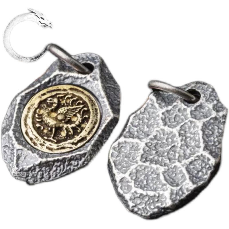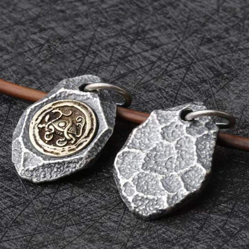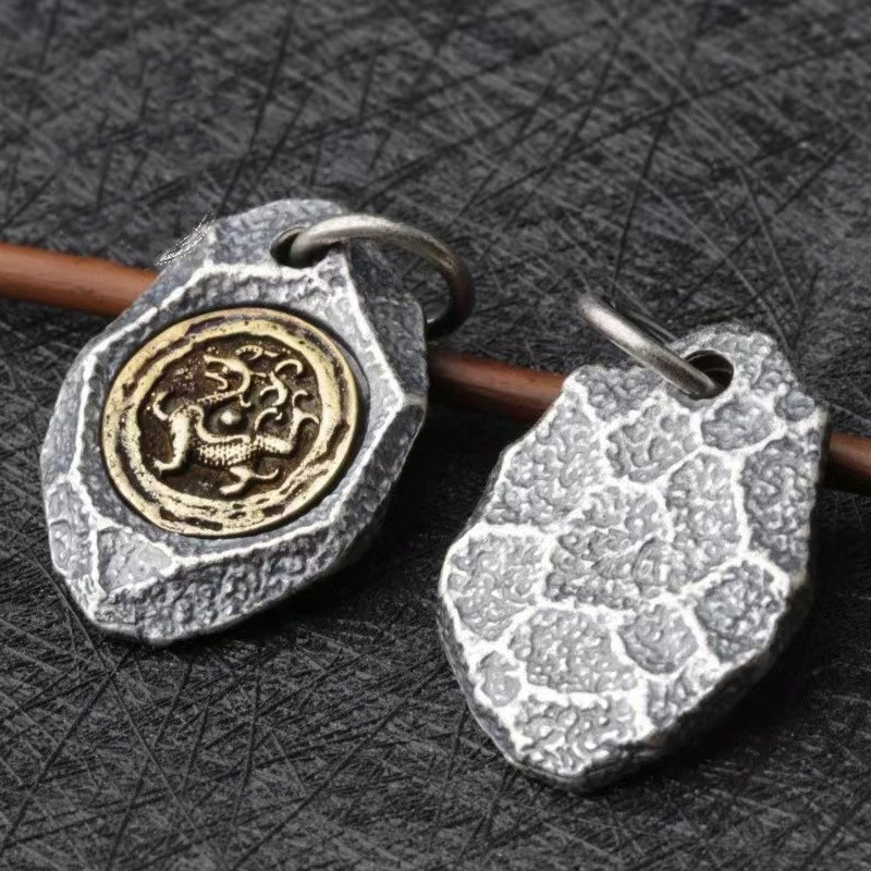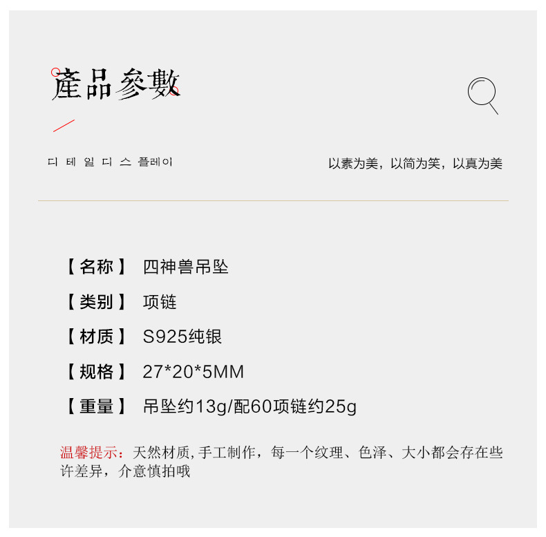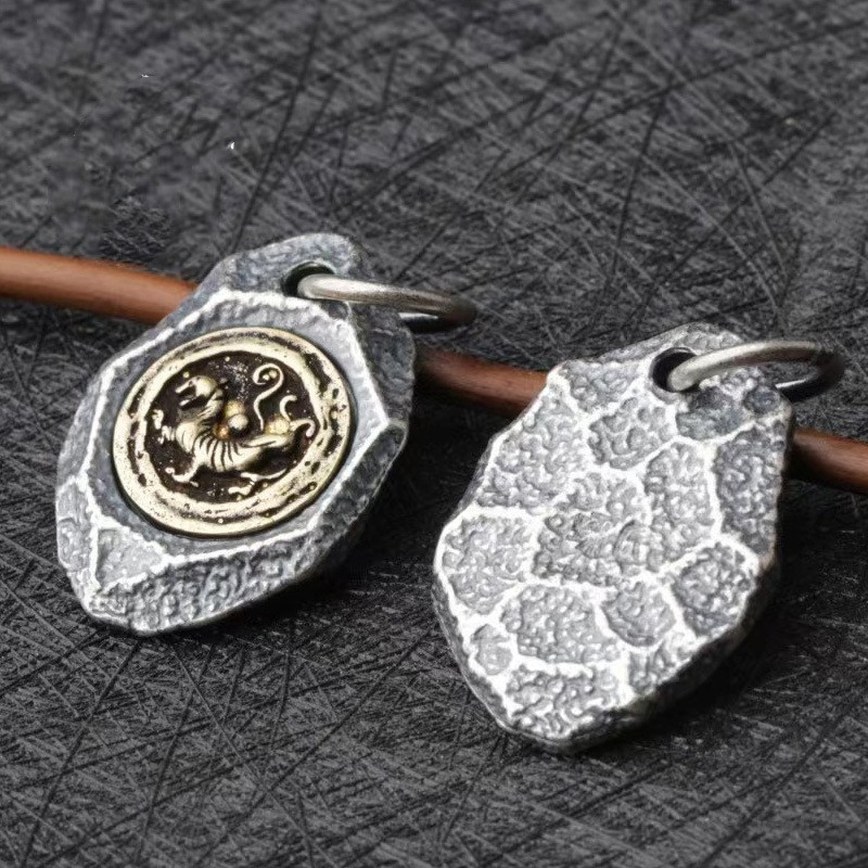 Sterling silver four God Beast pendant Dragon White Tiger basaltic rosefinch necklace men's national style personality silver ornaments