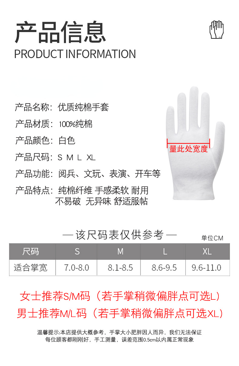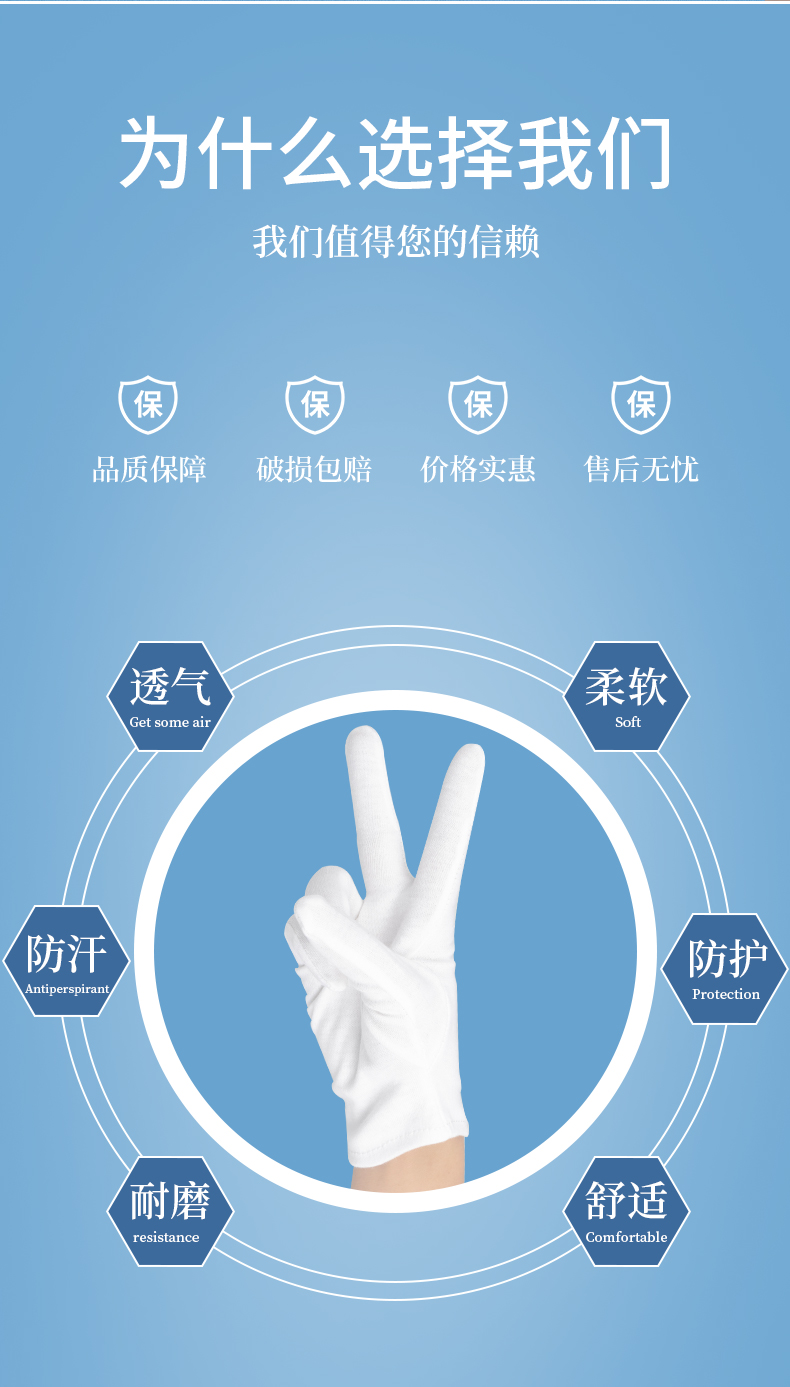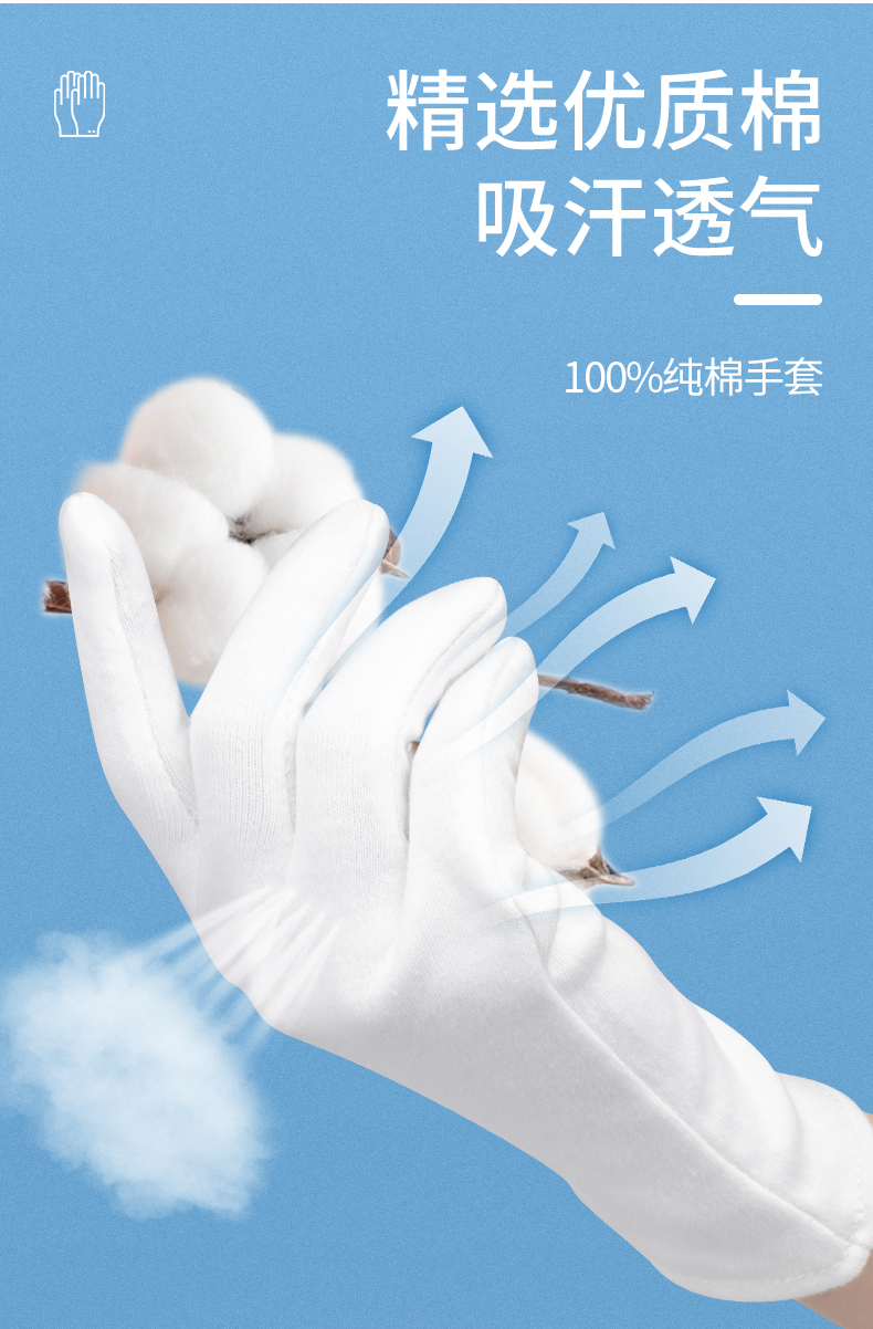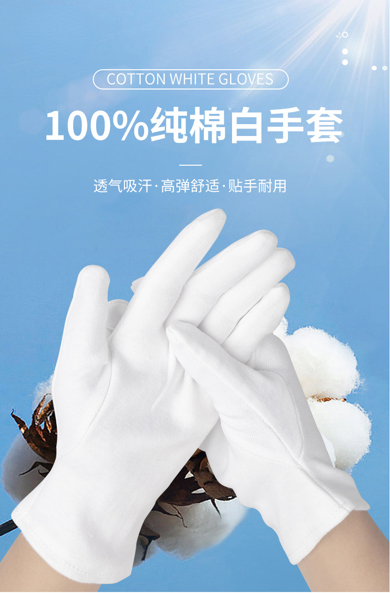 White gloves pure cotton high-grade three-rib etiquette Wenwan bracelet plate play Wanmao work men and women Summer thin sun protection