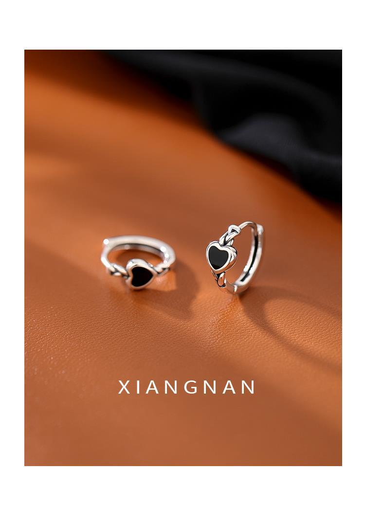 925 Silver Black Love Ear Ring Women 2023 New Fashion Ear Buckle Niche Design Earrings Summer Earrings