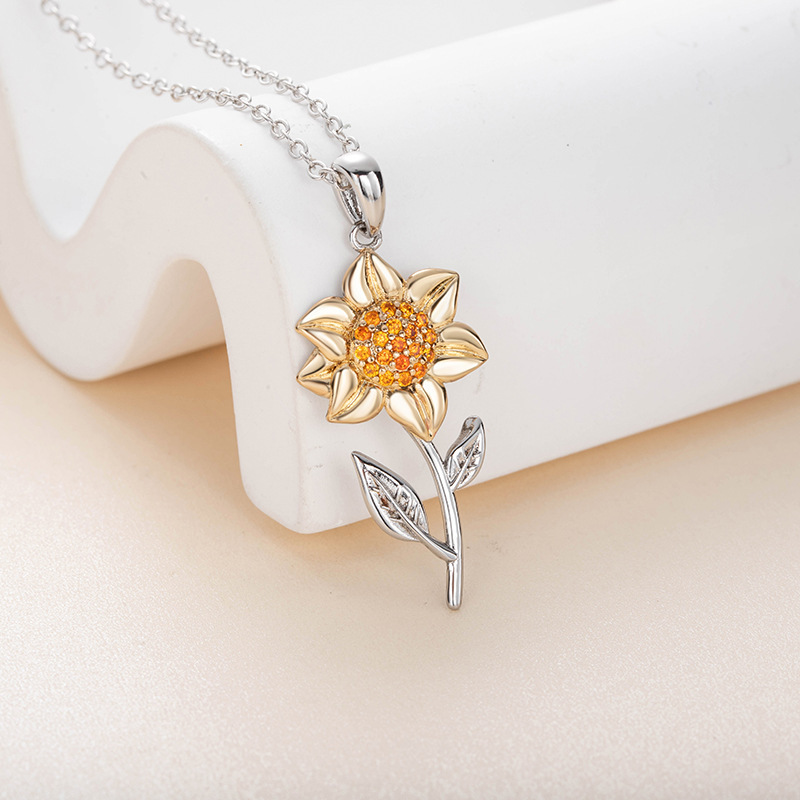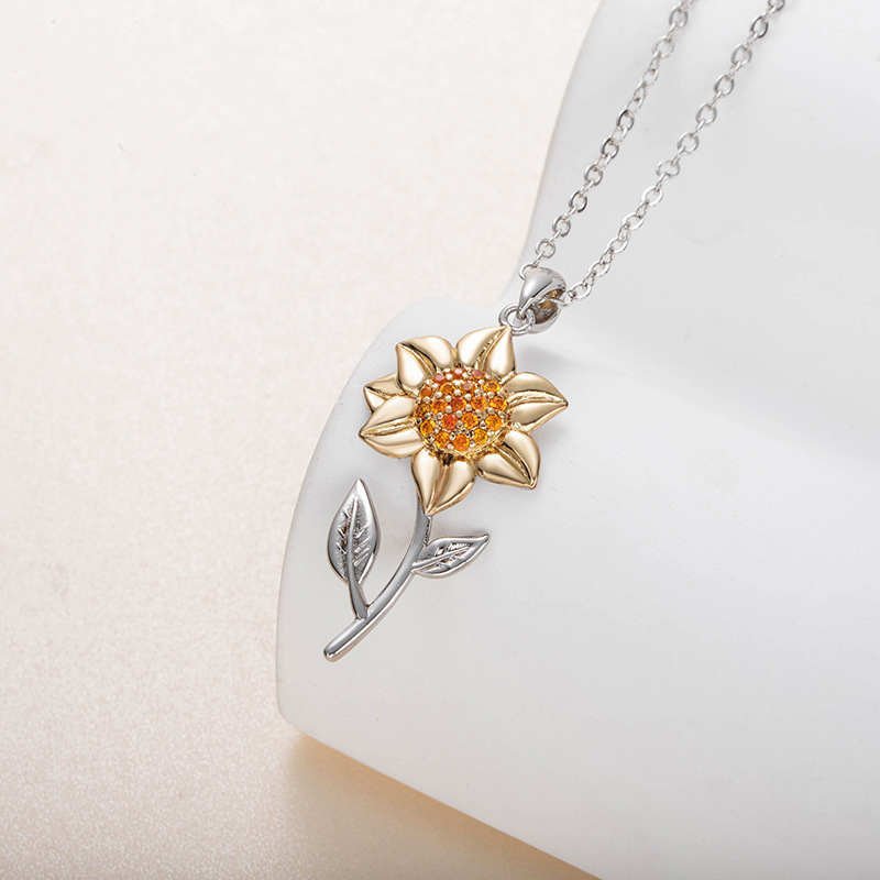 Amazon Cross-border Hot Sunflower Flower Pendant Sunflower Leaves Two-color Necklace Tanabata Send Girlfriend Wholesale