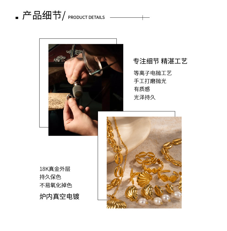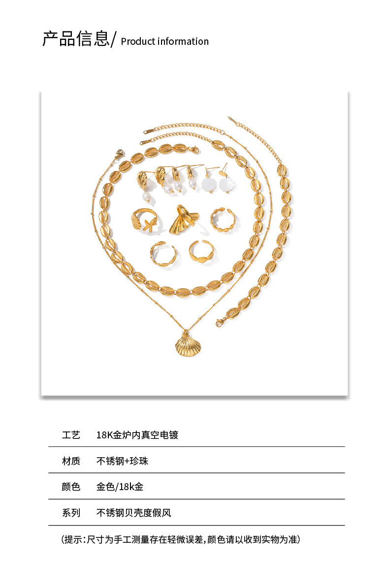 Wanxing Ocean Element Jewelry Set European and American Beach Vacation Shell Ring Necklace Electroplated Stainless Steel Jewelry