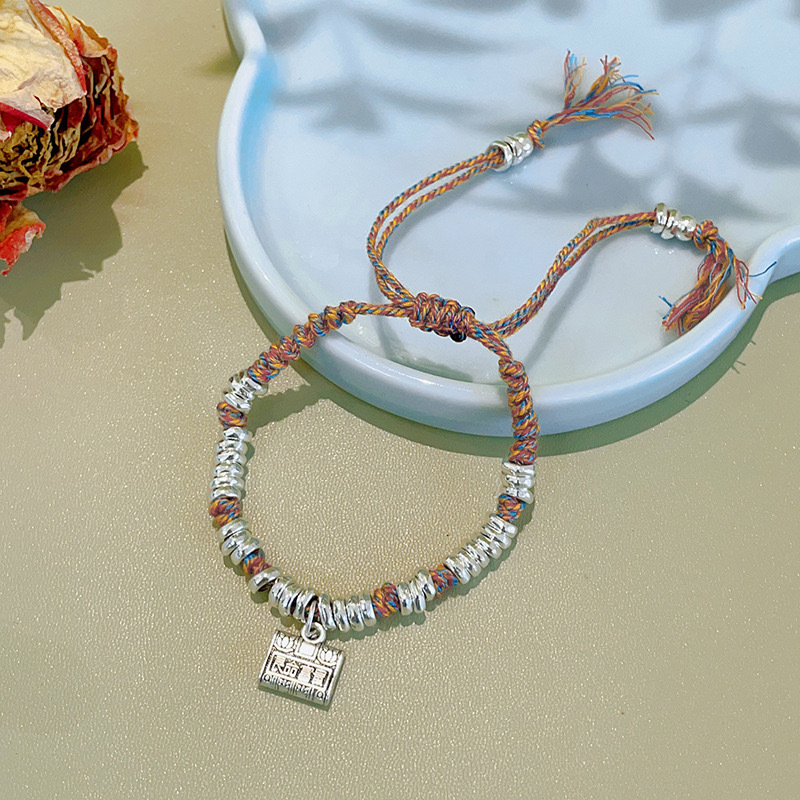 Color: Colorful rope silver spacer bracelet: back luck symbol