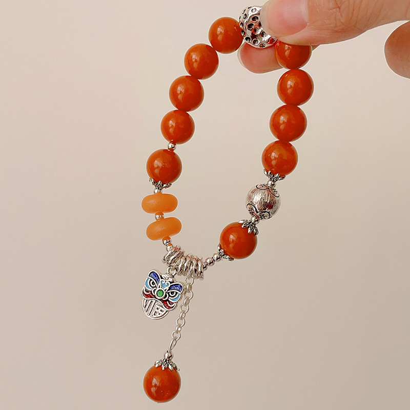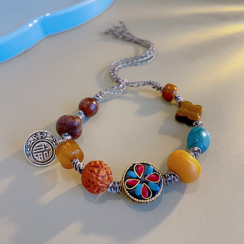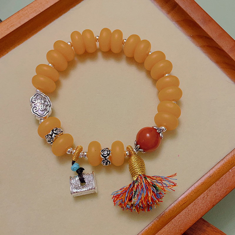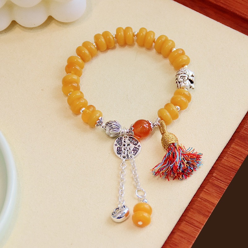Color: Flat round beeswax: auspicious elephant flower four tassel bracelet
