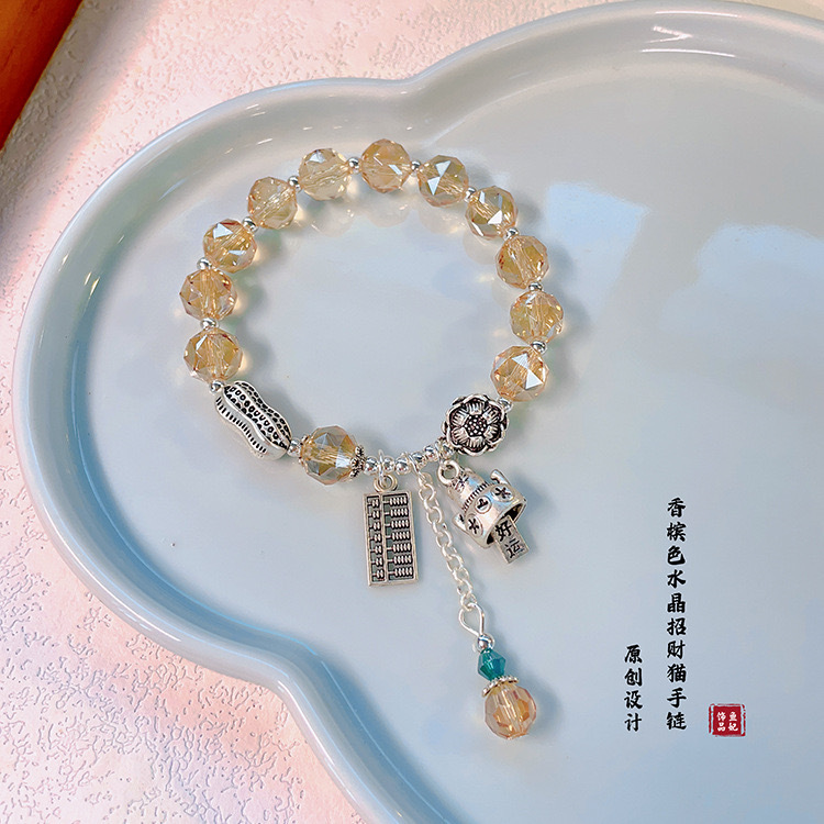 Color: Champagne crystal peanut abacus lucky cat bracelet