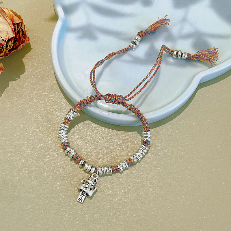 Color: Colorful rope silver spacer bracelet: god of wealth