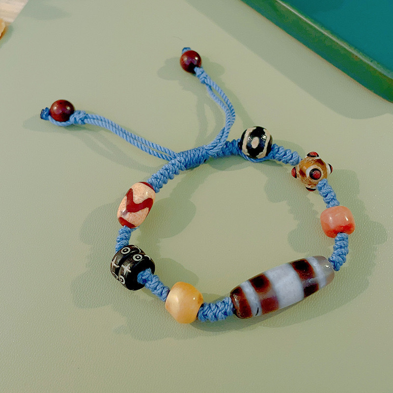 Color: Rich in the world: three-eyed dzi beads: hand-rubbed cotton thread bracelet