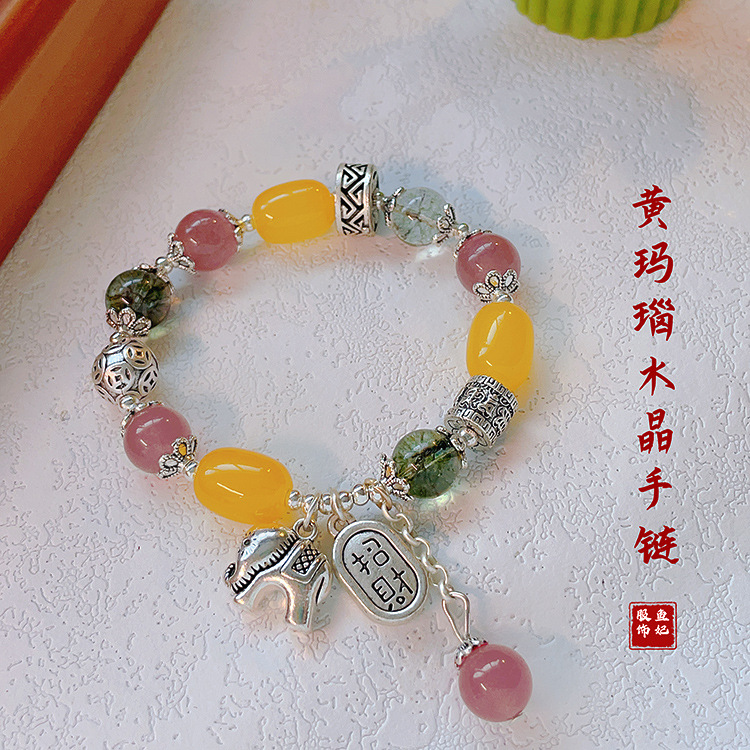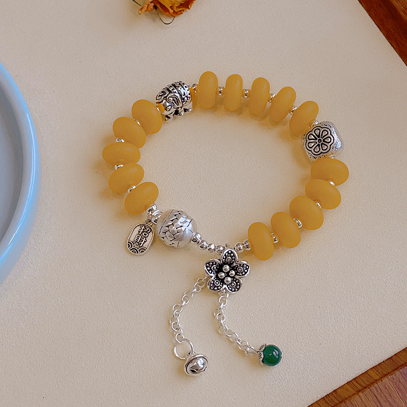 Color: Yellow bucket beads agate lucky elephant bracelet