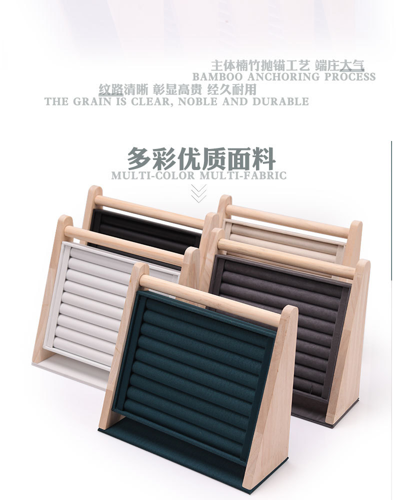 Color: Solid Wood Vertical Ring Display Stand Black Leather