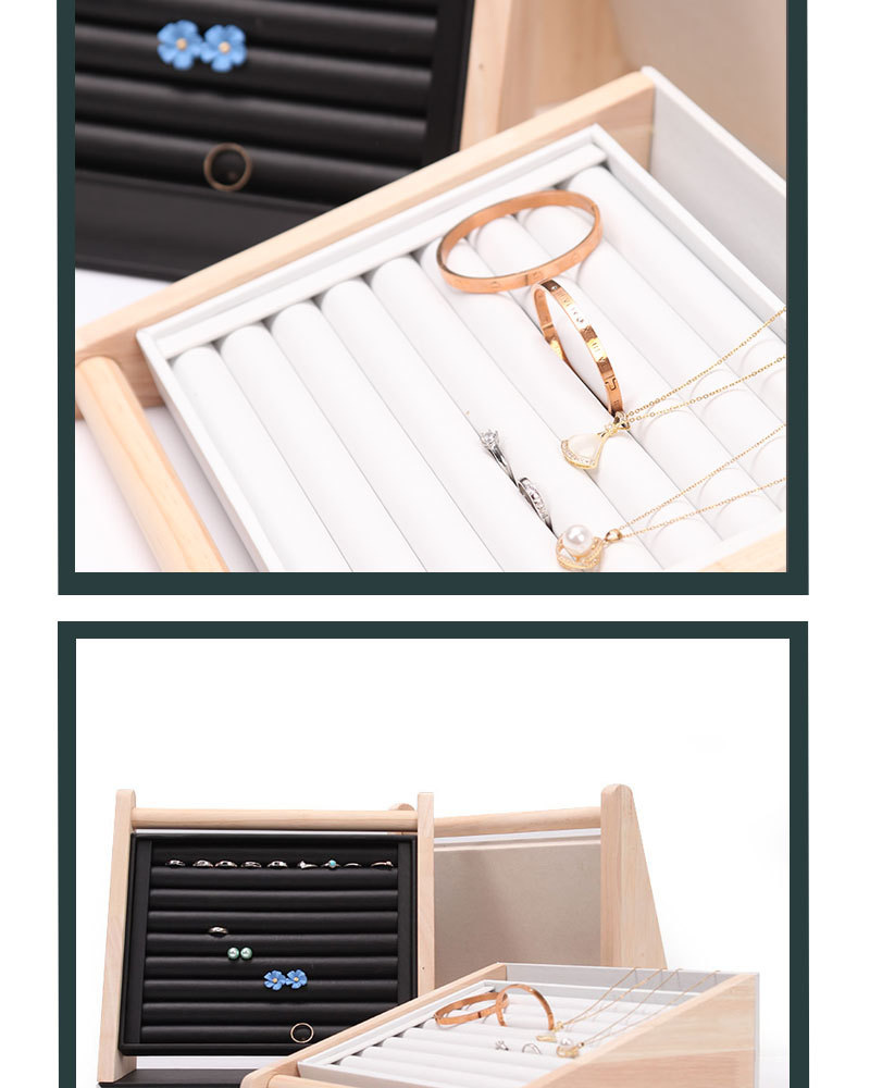 Color: Solid Wood Vertical Ring Display Stand White Leather