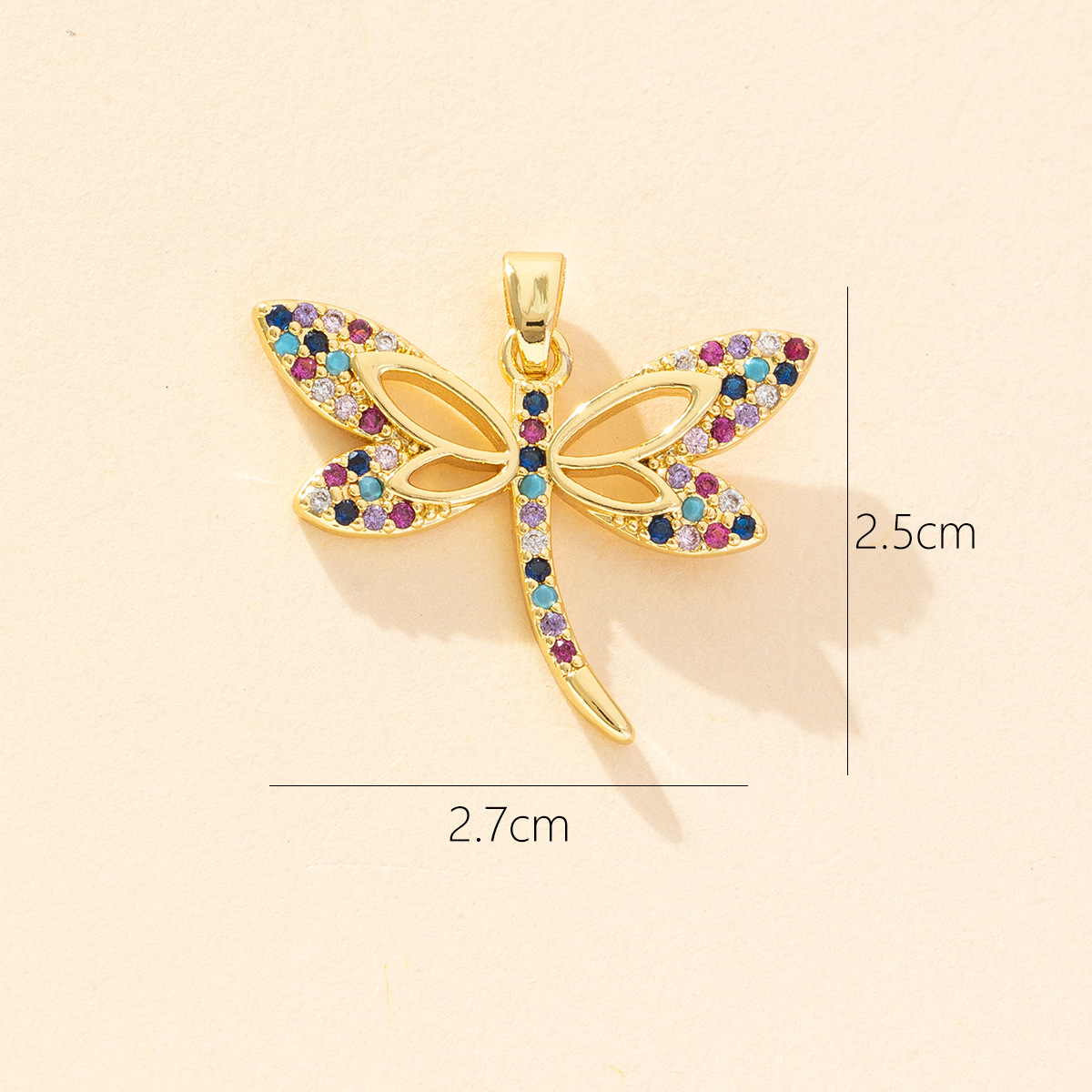 Attribute 3: Micro-inlaid electroplated dragonfly necklace pendant colored zircon jewelry