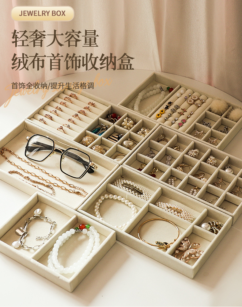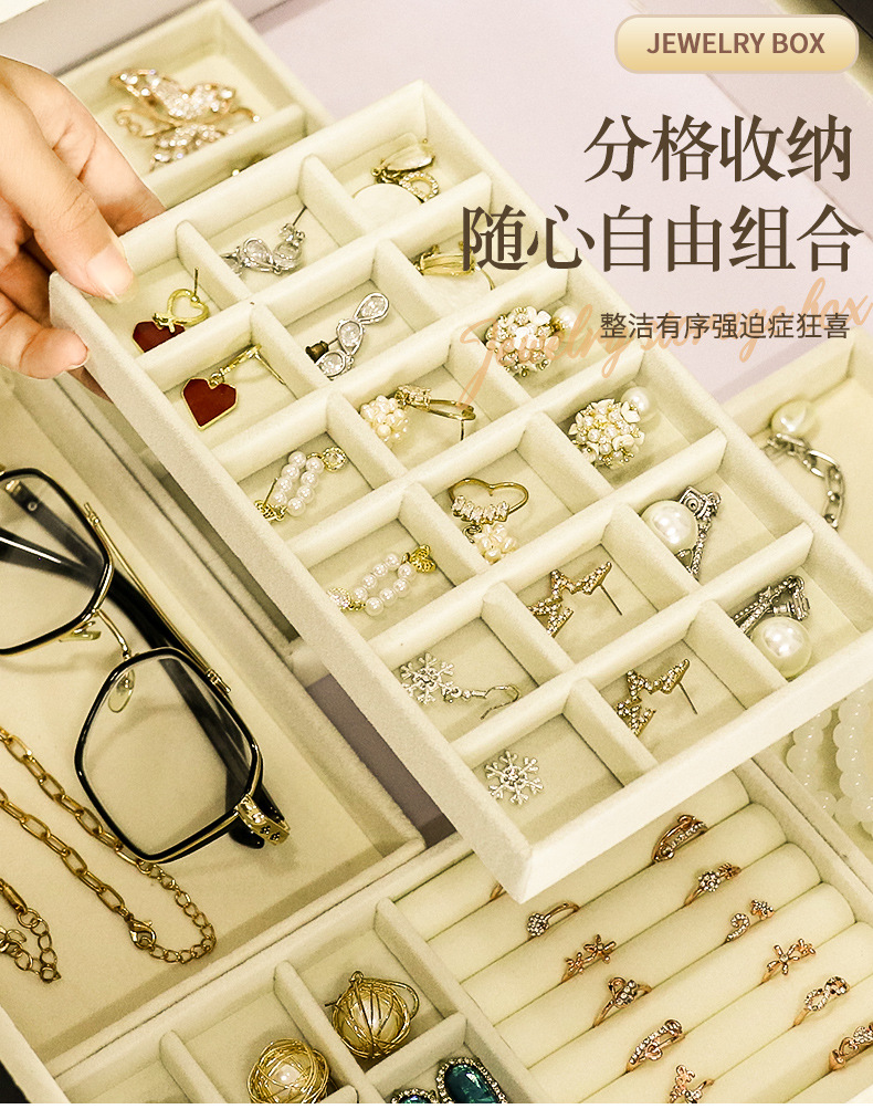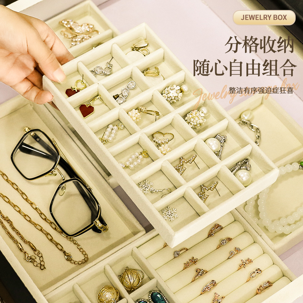 Jewelry storage box separated plaid flannel earrings earrings necklace tray drawer dressing table organizing display box