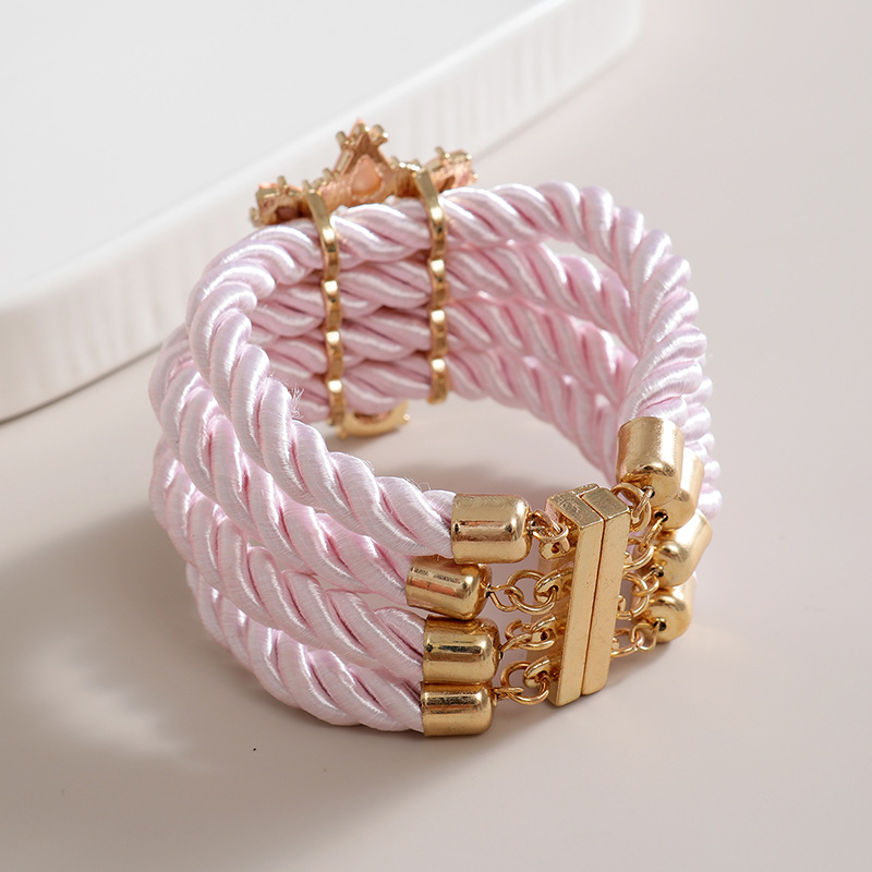Sweet Light Luxury Shiny Rhinestone Bracelet Wear Beautiful Bracelet Beautiful Girl's Heart Bursting Pink Accessories