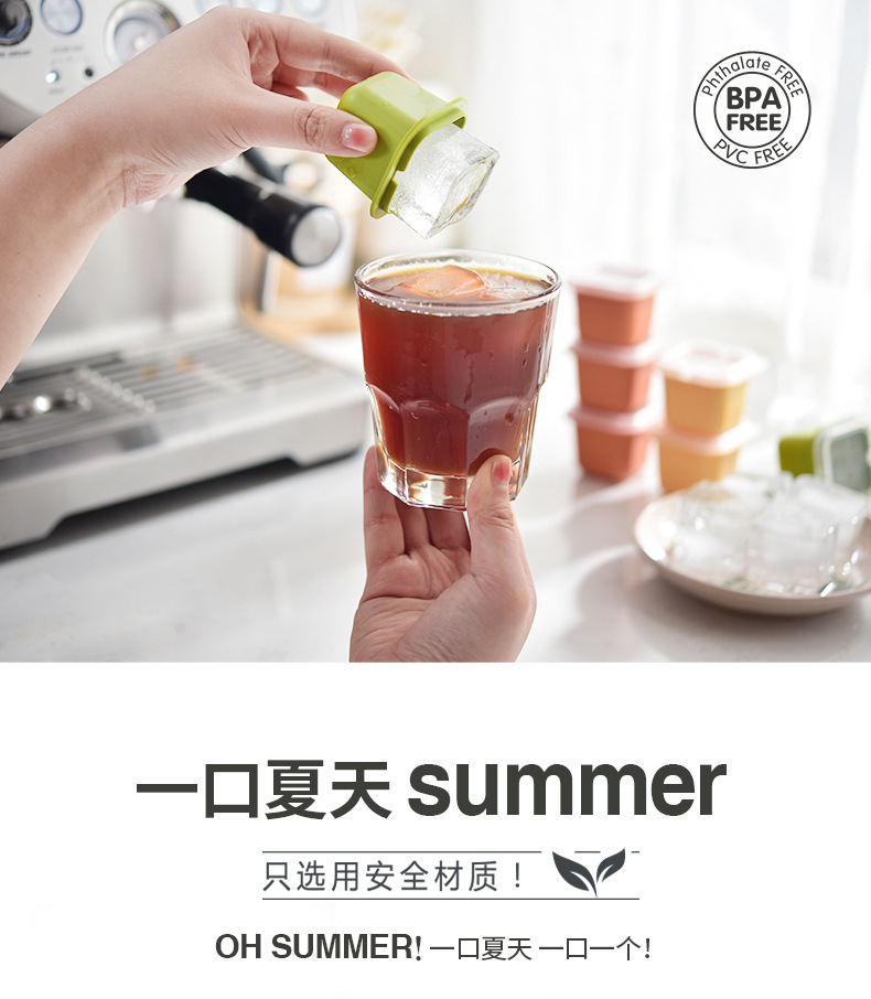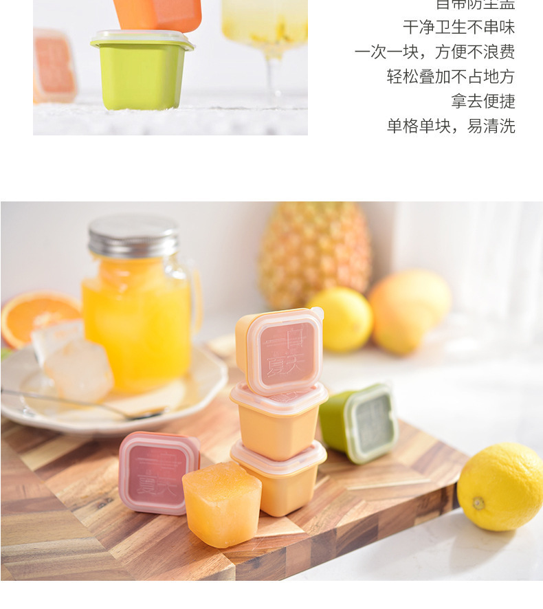 Household Ice Cube mold summer ice tray single square ice box quick-freezing easy-to-demoulding ice storage box with lid