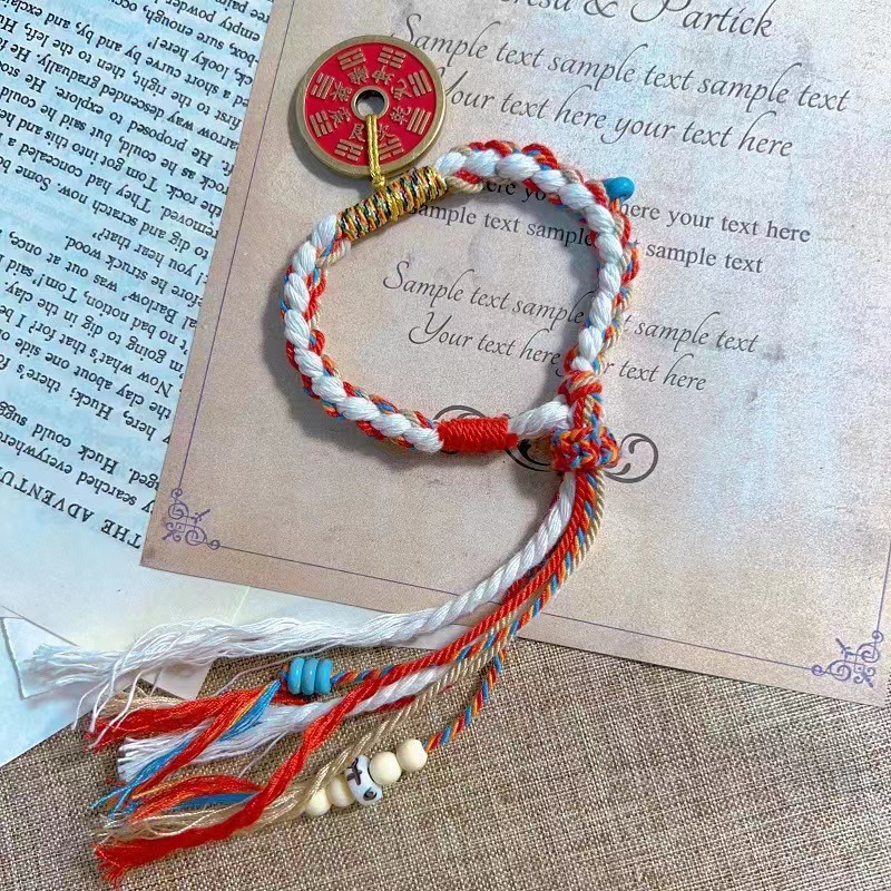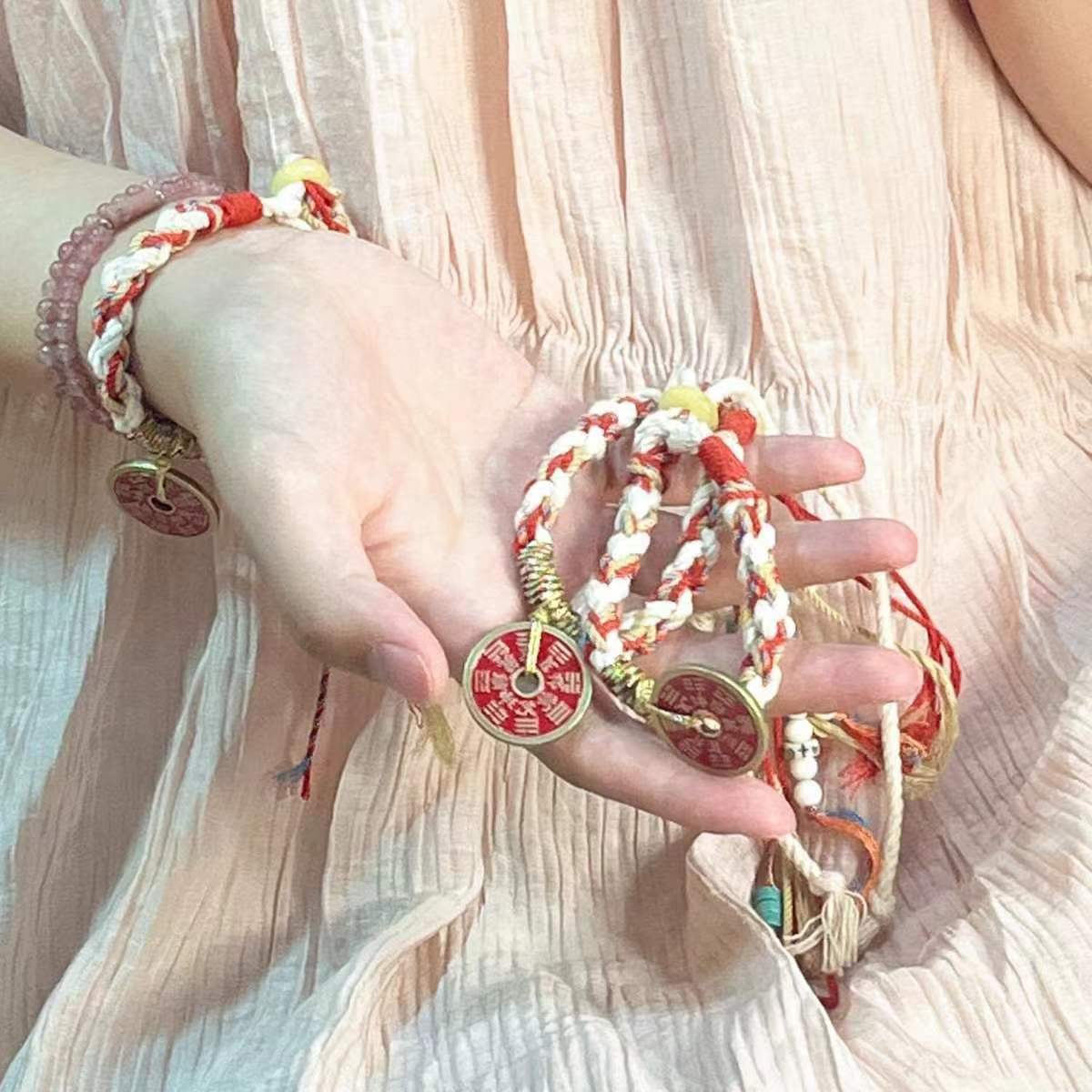 New Chinese Cinnabar Mountain Ghost Spending Hand Rope Xizang Mix and Match Hand-woven Mountain Ghost Spending Finished Bracelet Gift