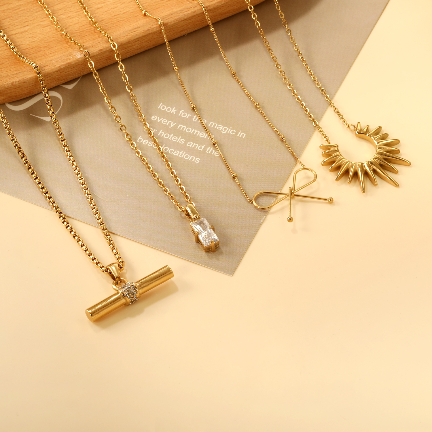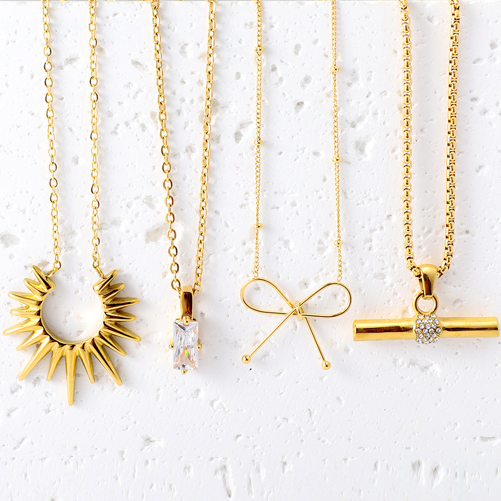 Ins Cross-Border European and American Necklaces for Women, Export Fashion, Versatile, Simple Design, Geometric Diamond-Encrusted Stainless Steel Clavicle Chain