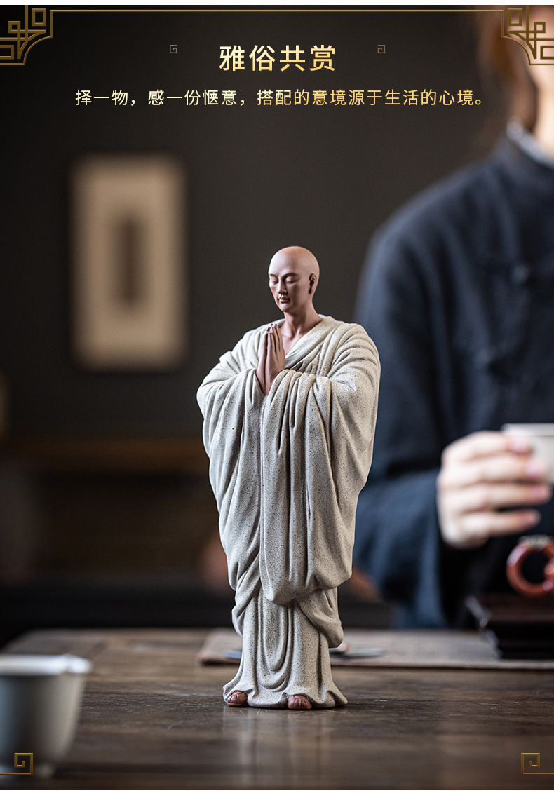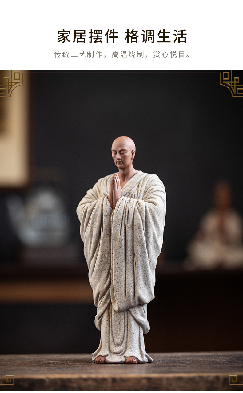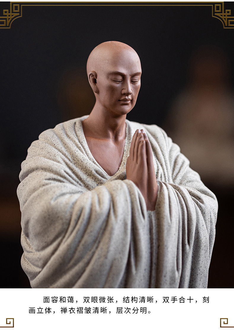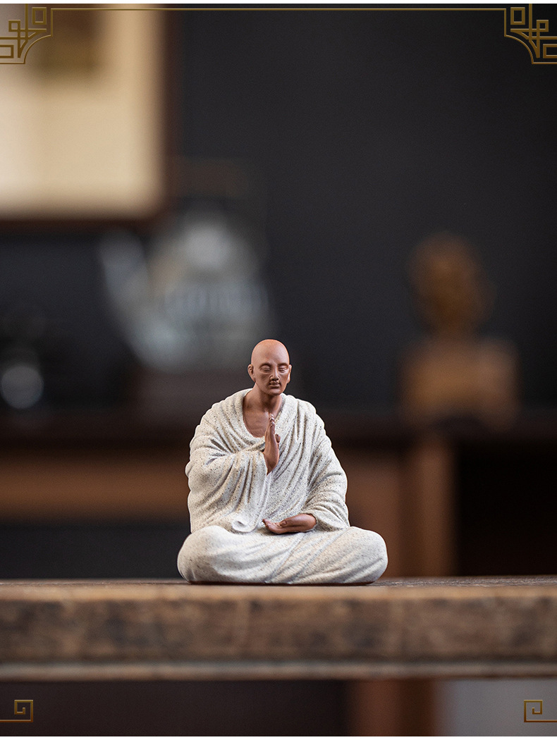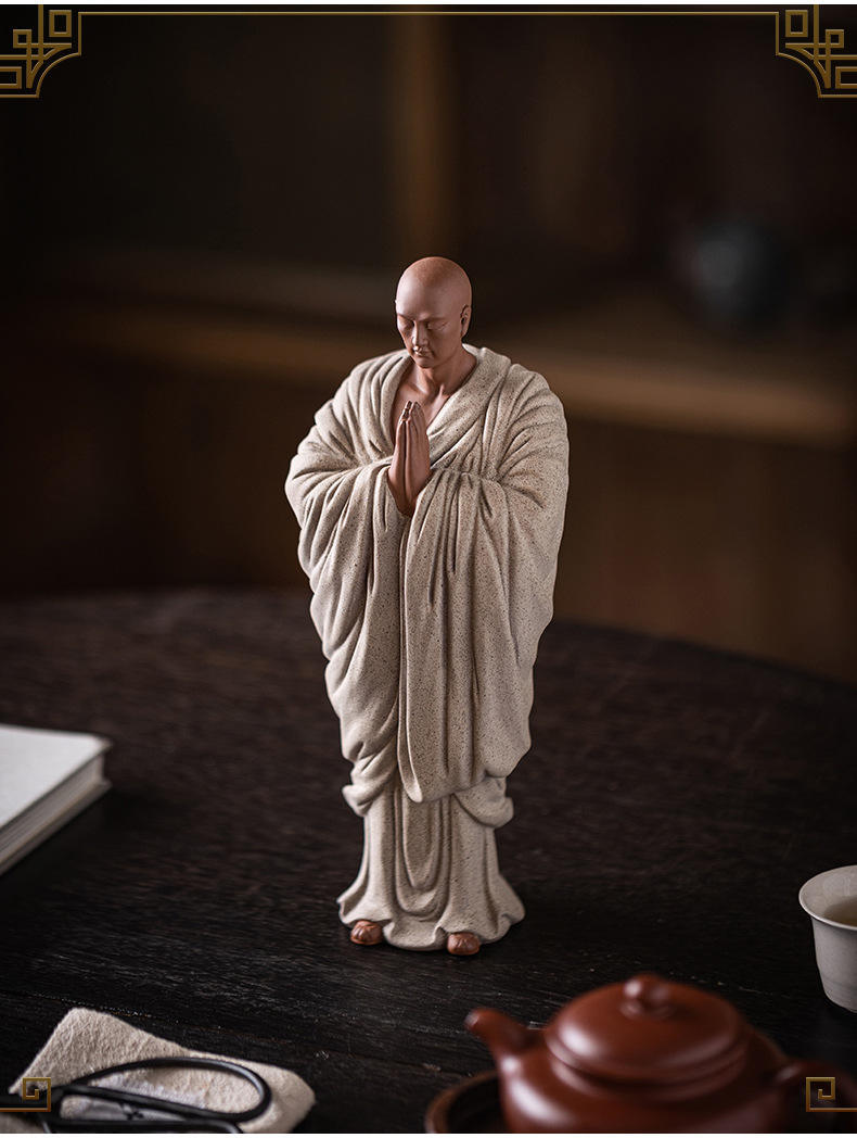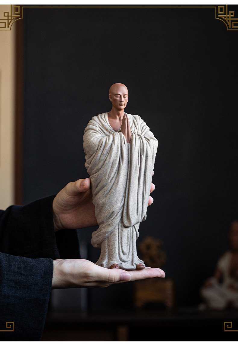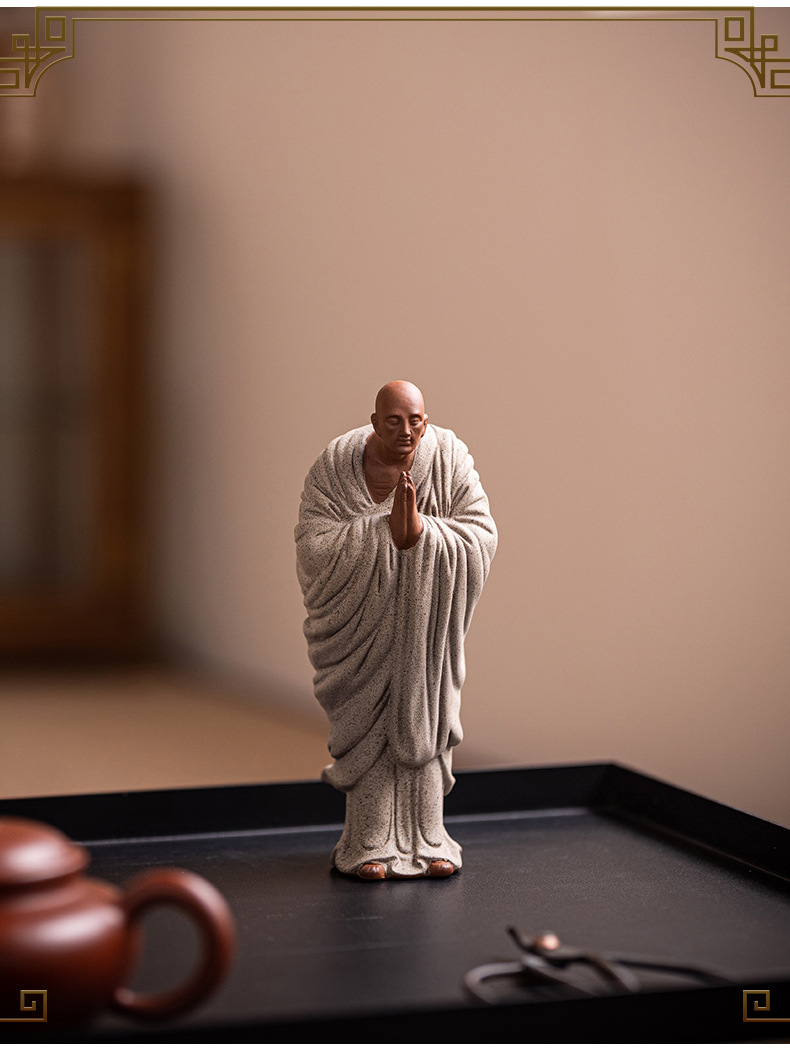 Zen Purple Sand Small Monk Ornaments Chinese Home Wish Small Monk Tea Room Desktop Antique Frame Ceramic Crafts